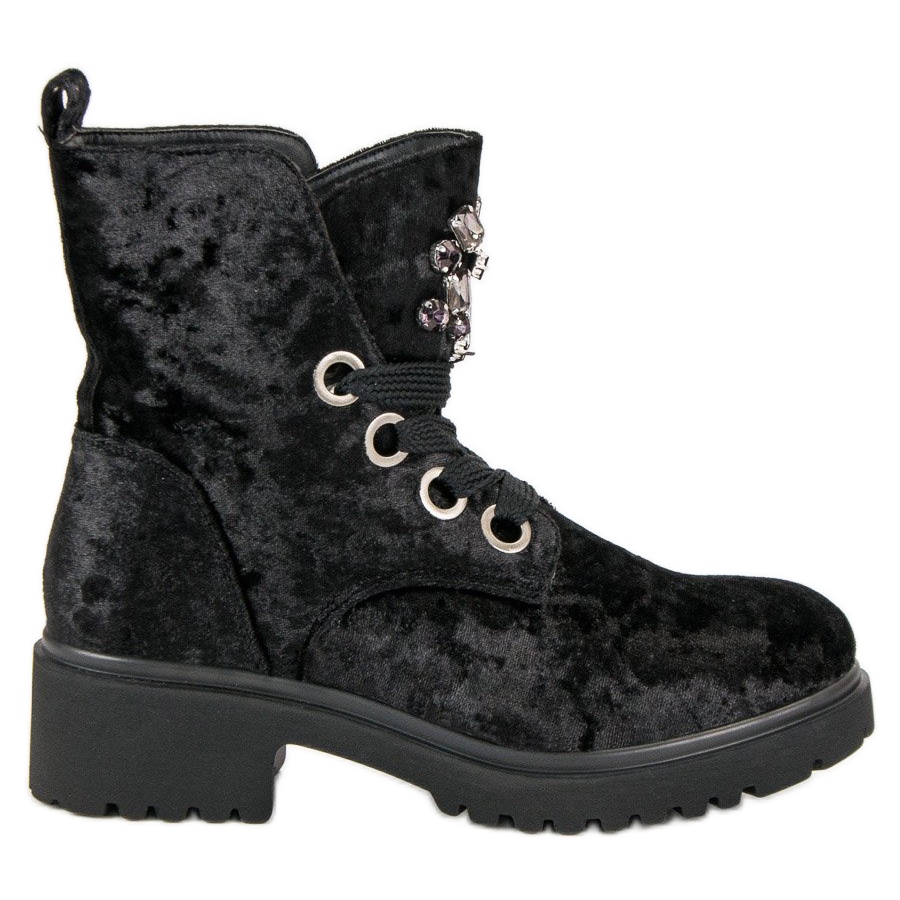 Descubra elegância e conforto graças aos botins de veludo da Kylie em um clássico tom preto. É a escolha ideal para mulheres que valorizam o design moderno e o conforto do dia a dia. As botas distinguem-se pelas decorações subtis com cristais, que lhes conferem um carácter único e as tornam apelativas.