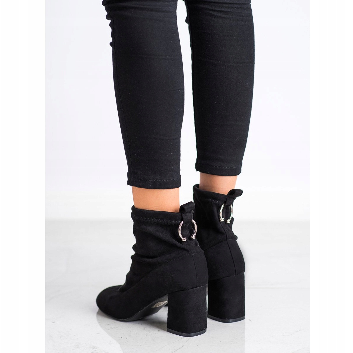 Enegrecidos sem padrão, estes elegantes botins adaptam-se perfeitamente às tendências atuais. A largura superior de 22 cm e a altura superior na faixa de 12-13 cm tornam-nos uma escolha confortável para muitas mulheres. Embalados na caixa original do fabricante, serão um presente perfeito para qualquer fashionista.