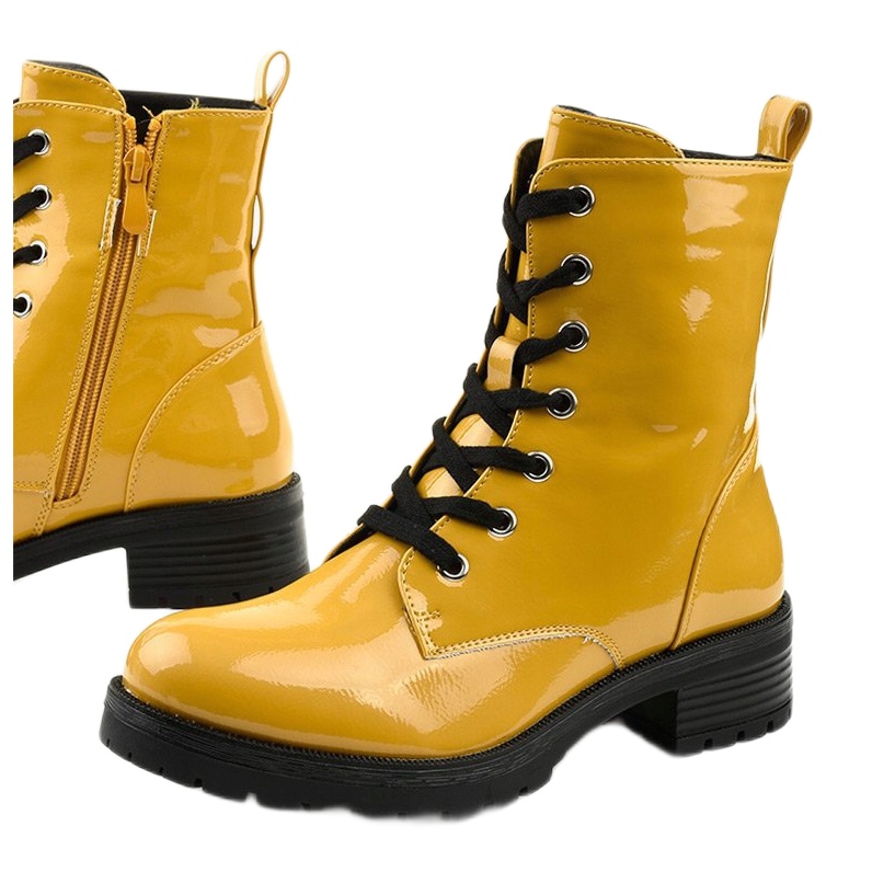 Não espere, adicione à sua coleção estas botas bovver lacadas amarelas exclusivas, que certamente irão enfatizar o seu estilo individual!