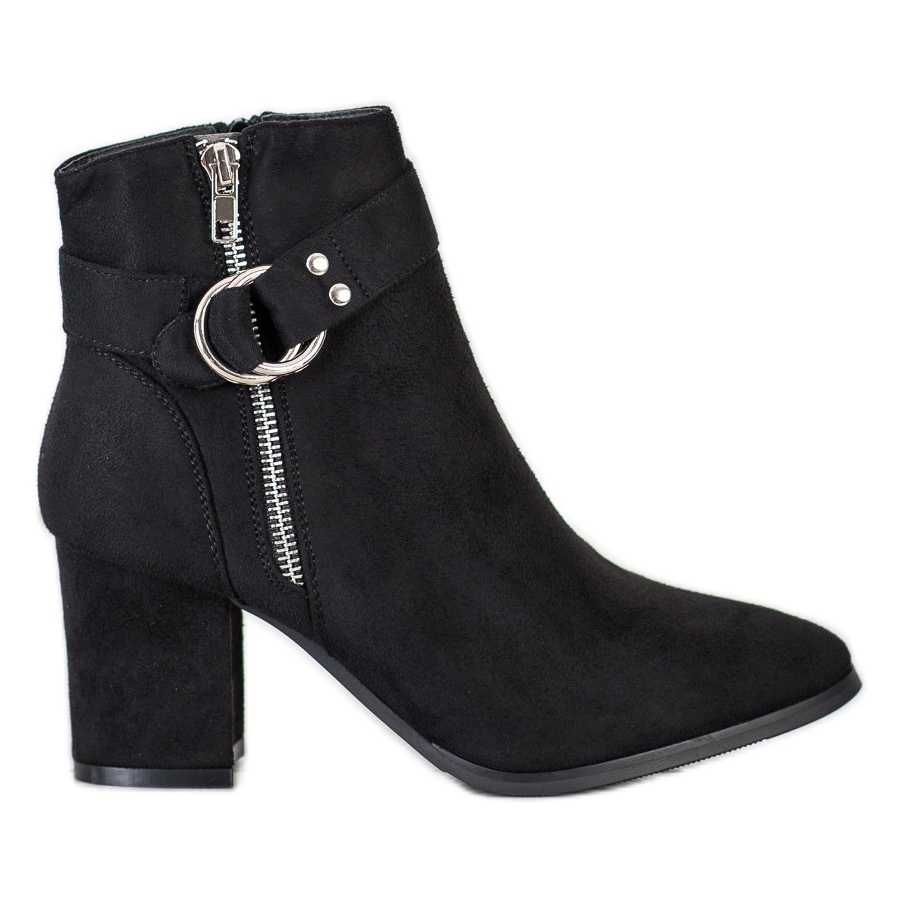 Os botins Balada estilosos e elegantes são a escolha perfeita para mulheres que valorizam a combinação de conforto e design moderno. Confeccionados em couro camurça ecológico de alta qualidade, estes botins pretos acrescentam elegância a qualquer estilo e a tira decorativa confere-lhes um carácter único.