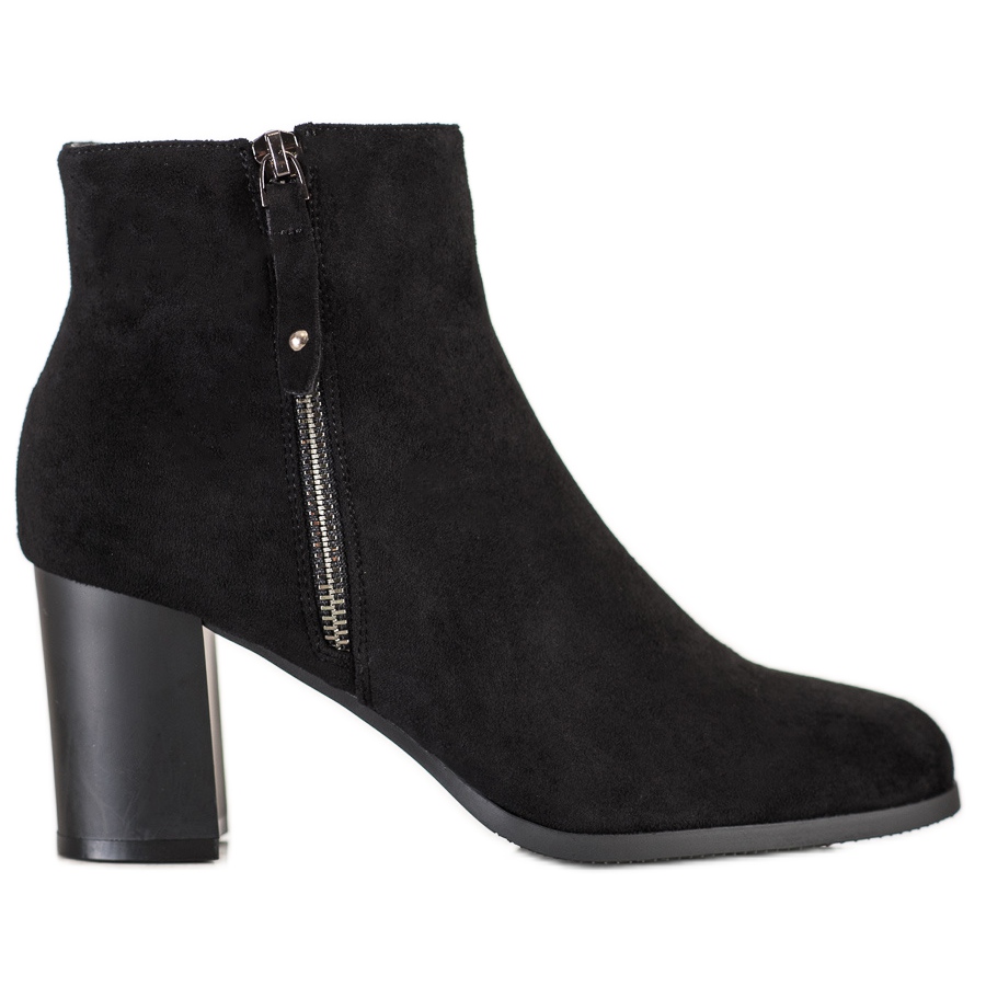 Botins elegantes com zíper decorativo da Bestelle são a escolha perfeita para mulheres que desejam combinar detalhes elegantes com o conforto do dia a dia. Feitos em imitação de camurça de alta qualidade, estes botins pretos combinam perfeitamente com as últimas tendências da moda.