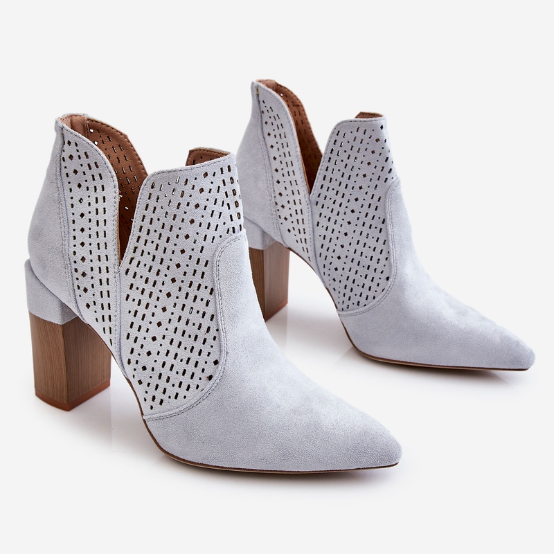 Detalhes: PM1 Botas elegantes de camurça vazadas salto alto cinza Genevi prata