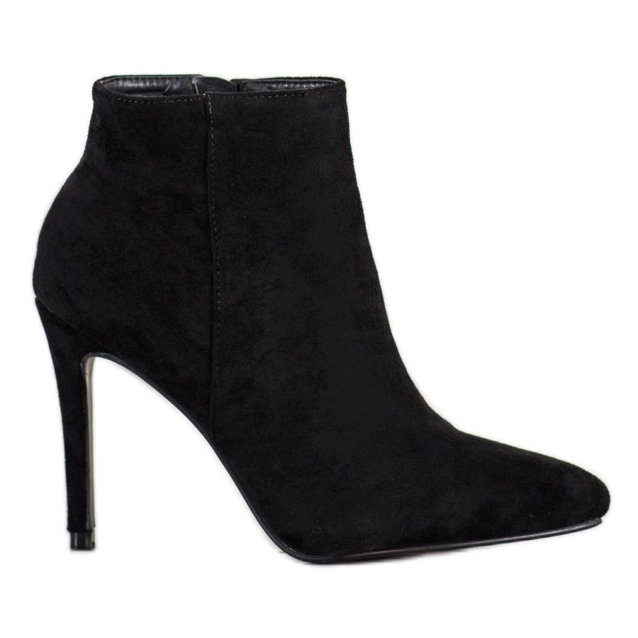 Apresentamos elegantes botins de salto alto do fabricante Small Swan, que se tornarão um elemento insubstituível de qualquer guarda-roupa elegante. Estes botins pretos combinam um design moderno com conforto, o que os torna perfeitos para celebrações e festas noturnas.