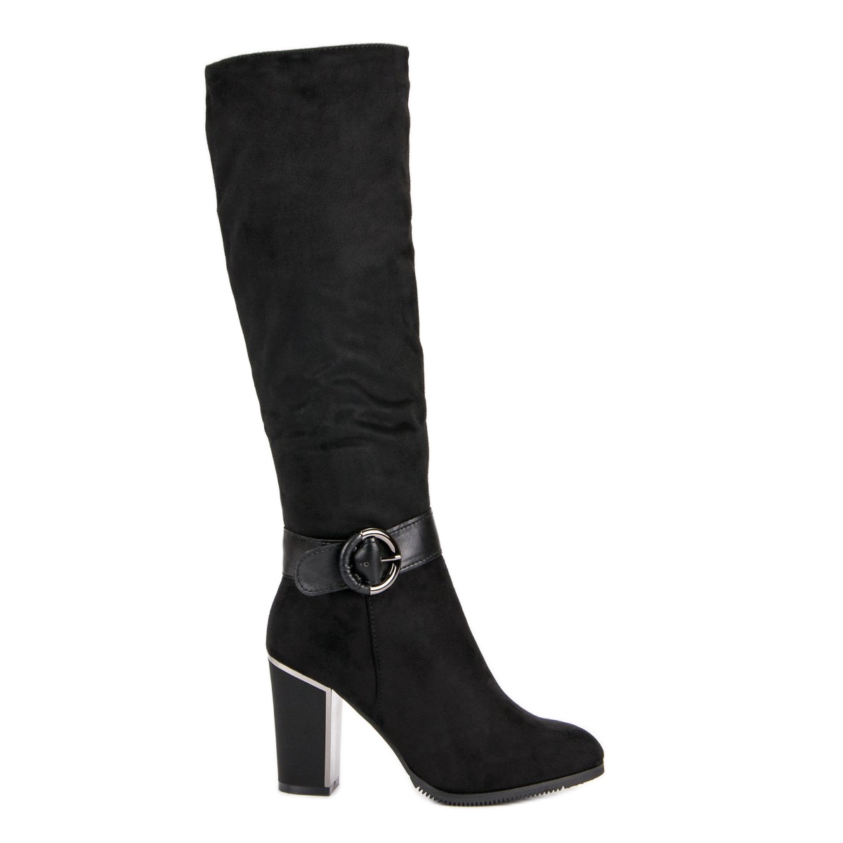 O cano alto, chegando até o joelho, destaca perfeitamente as pernas, e o salto macio torna as botas extremamente confortáveis. Montados sobre um poste estável de 9 cm de altura, combinam perfeitamente elegância e praticidade, o que os torna uma ótima opção para saídas à noite ou festas. Além disso, o salto envernizado e a tira decorativa conferem-lhes um carácter único.