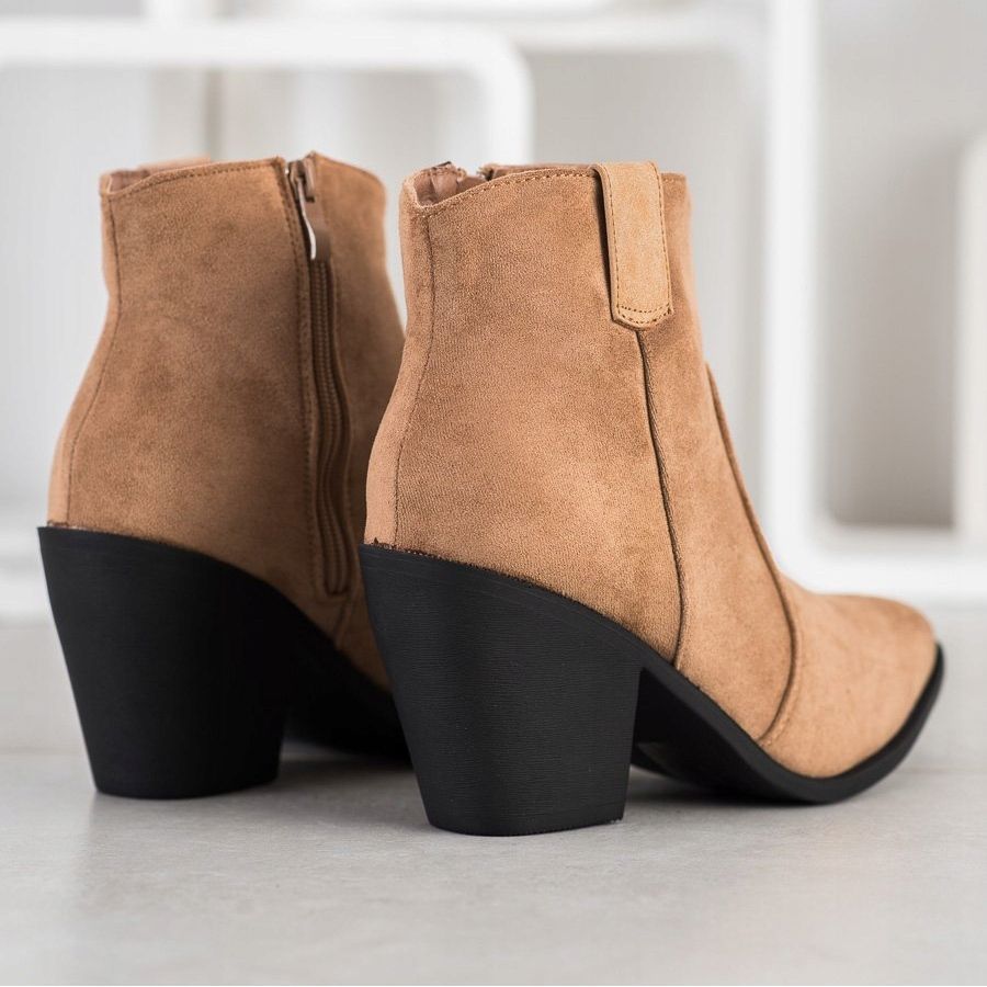 Confeccionadas em couro camurça ecológico, as botas se diferenciam não só pelo aspecto estético, mas também pela durabilidade e conforto de uso. O design clássico os torna perfeitos para looks do dia a dia e da noite. Graças à ponta pontiaguda e ao salto bloco de 8,5 cm de altura, serão o complemento perfeito para calças, vestidos e saias.