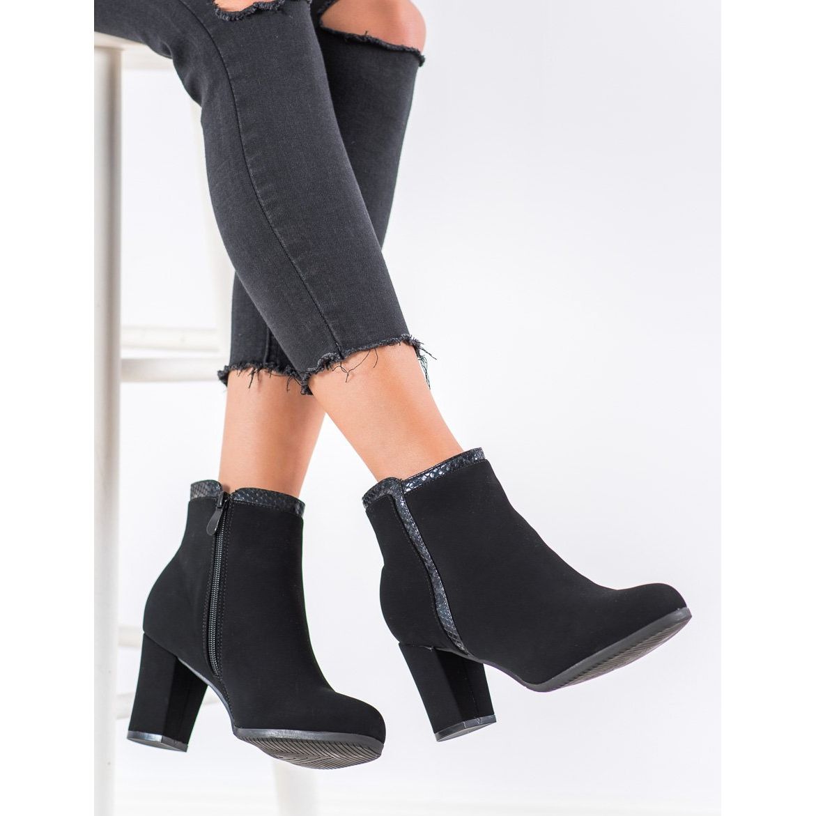 Os estilosos botins Weide na cor preta são uma escolha elegante para mulheres que valorizam moda e conforto. Confeccionados em couro ecológico camurça preto de alta qualidade, combinam um visual moderno com elementos clássicos. Graças ao salto bloco de 7,5 cm de altura, proporcionam estabilidade e conforto no uso diário, ao mesmo tempo que conferem elegância a qualquer estilo.
