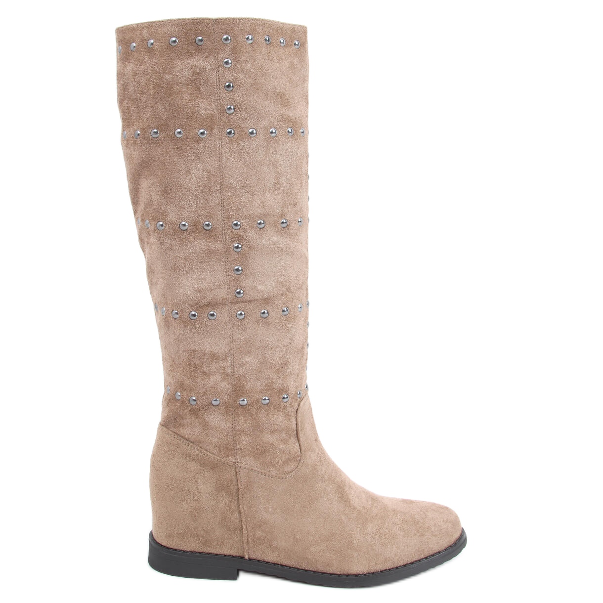 As botas de cunha oculta Ferto em bege cáqui são a escolha perfeita para mulheres que valorizam uma combinação de estilo e conforto. Distinguem-se pelo corte moderno e pelos detalhes elegantes, como as tachas, que lhes conferem carácter. Confeccionados em camurça ecológica de alta qualidade, além de estéticos, são agradáveis ao toque.