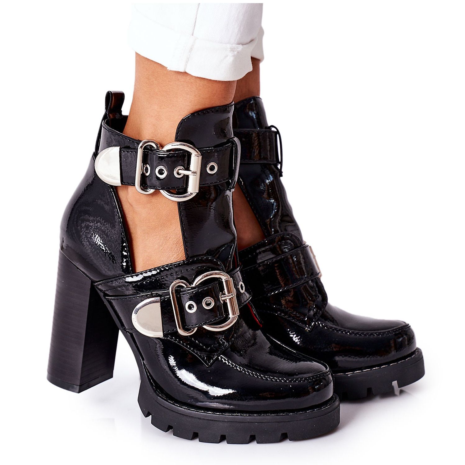 Botas pretas de salto alto com fivela Bramshall são a escolha perfeita para mulheres que desejam combinar elegância com conforto. Estes elegantes botins confeccionados em couro ecológico envernizado distinguem-se não só pelo seu aspecto moderno, mas também pela sua praticidade.