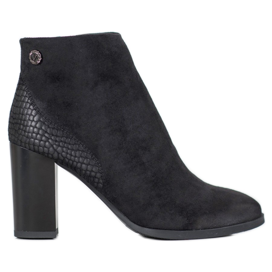 Os botins pretos de salto alto Goodin são a escolha perfeita para toda mulher moderna que valoriza estilo e conforto. O calçado até ao tornozelo distingue-se pelo seu design elegante e praticidade. Confeccionadas em couro ecológico de alta qualidade, as botas certamente chamarão a atenção pela frente lisa e salto sutil com relevo imitando pele de cobra, o que lhes confere um caráter único.