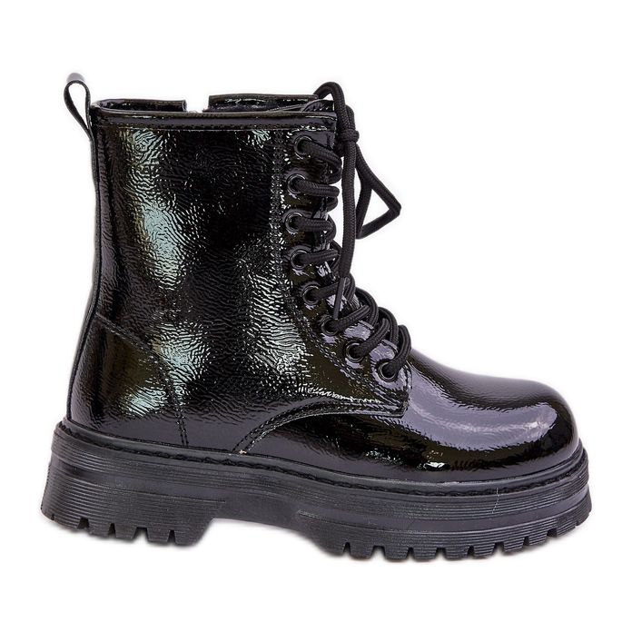 Detalhes: Botas envernizadas isoladas para menina com zíper preto Novita preto