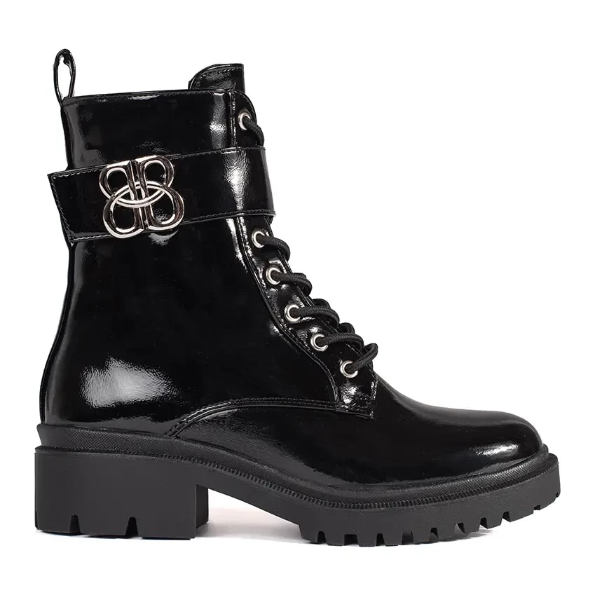 BOOTS BLACK BOOTS MULHERES Os trabalhadores são uma escolha perfeita para todos os fashionistas que querem combinar estilo com conforto. Esses sapatos da moda, feitos de pele ecológica, não apenas se deleitam com sua aparência, mas também se encaixam na idéia de desenvolvimento sustentável, cuidando do meio ambiente. Seu final brilhante e envernizado adiciona um personagem moderno, e a cor preta clássica faz com que essas botas se misturem bem com várias estilizações - do dia a dia a mais elegante.