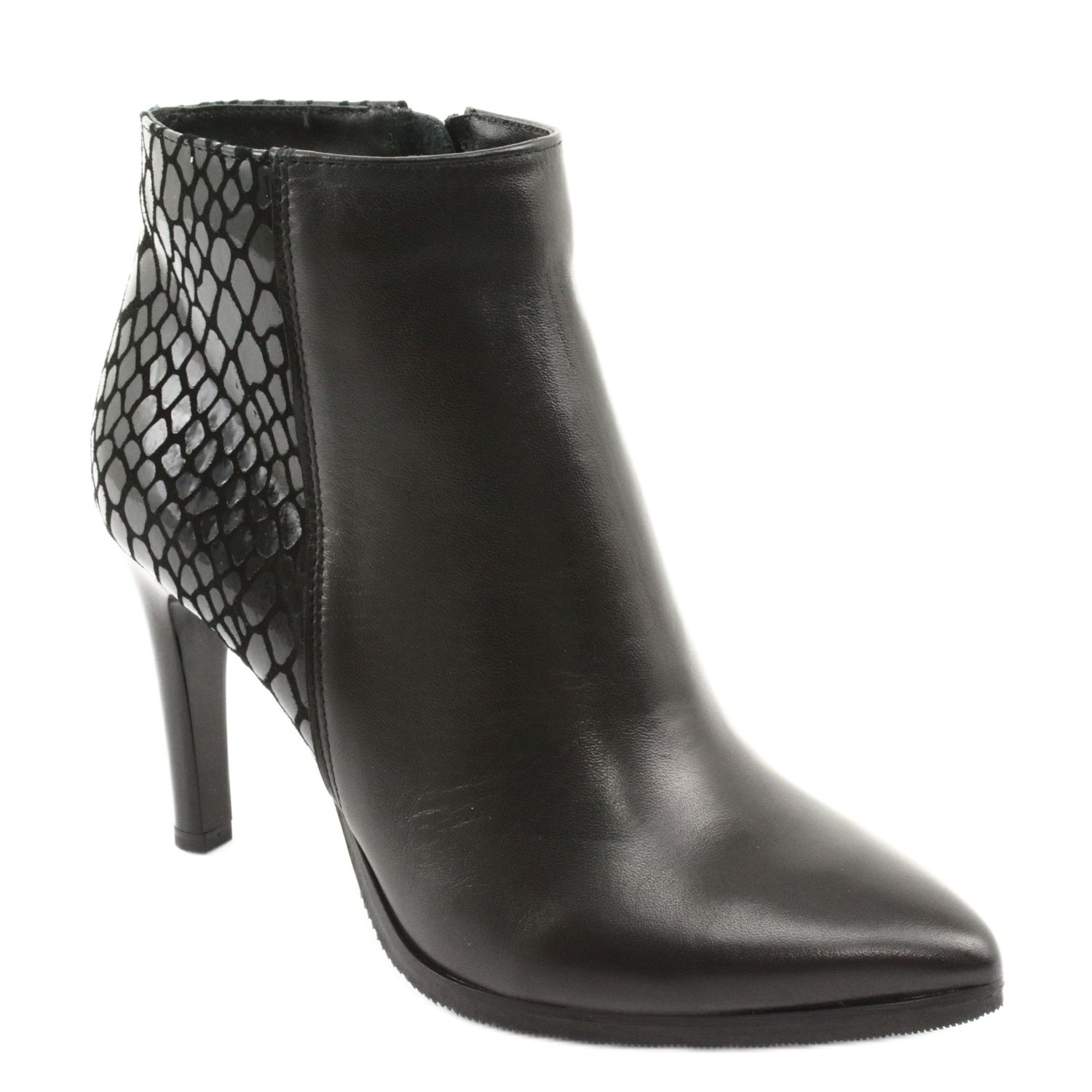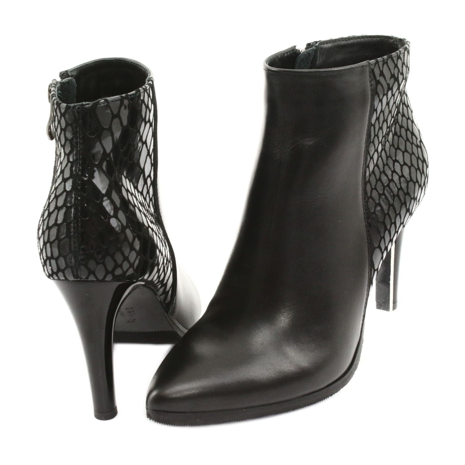 Os botins pretos de salto alto Espinto são a escolha perfeita para mulheres que pretendem aliar elegância ao conforto. O modelo 118 é feito de couro granulado natural de alta qualidade, o que torna os sapatos não apenas elegantes, mas também duráveis. O acabamento preto lacado confere-lhes um brilho único e a sua cor universal faz com que combinem perfeitamente com vários estilos - tanto para o dia a dia como para ocasiões especiais.