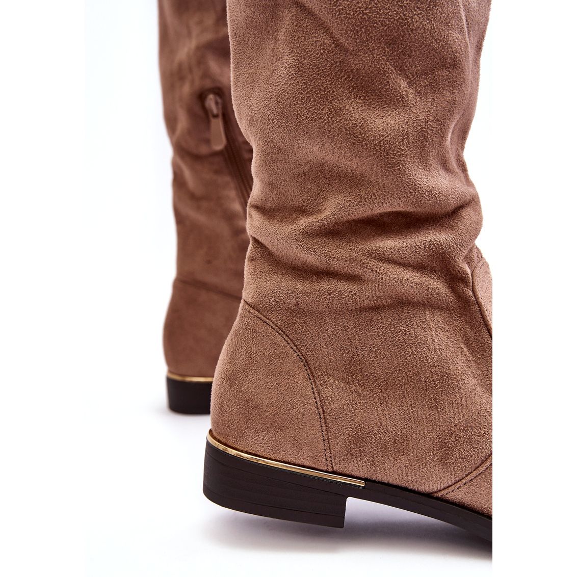 Mosqueteiros Super Me Elegantes e Práticos em uma sombra quente e bege é a escolha perfeita para os dias de outono e inverno. Feito de couro ecológico de alta qualidade com textura de camurça, eles combinam um estilo feminino com conforto.