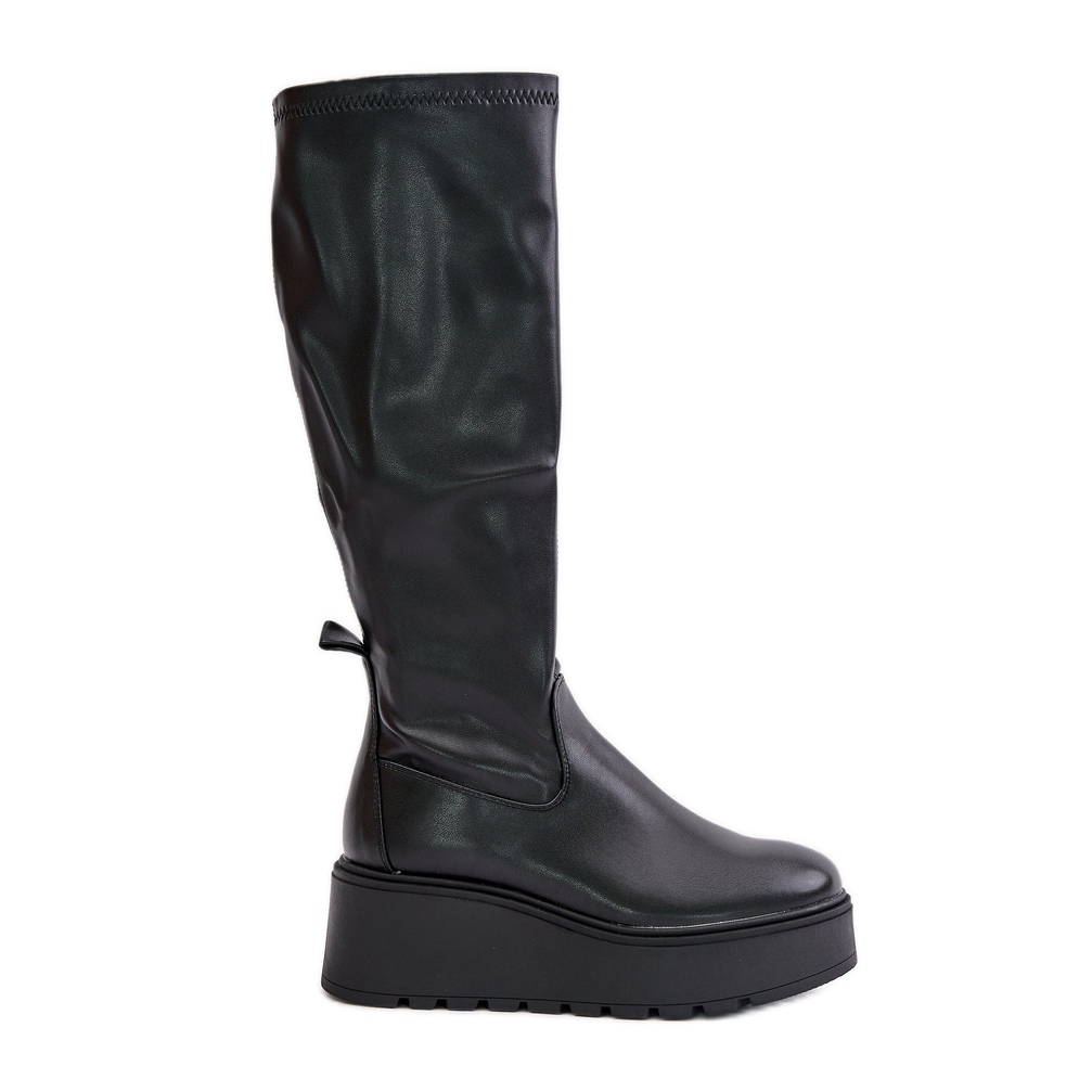 Descubra a elegância extraordinária e o conforto de usar graças às botas femininas no joelho na plataforma e cunha de Vincez (Modelo 58342) em Black. Essas botas elegantes, feitas de couro ecológico de alta qualidade, são a escolha perfeita para dias mais frios, fornecendo calor e conforto graças ao aquecimento suave.