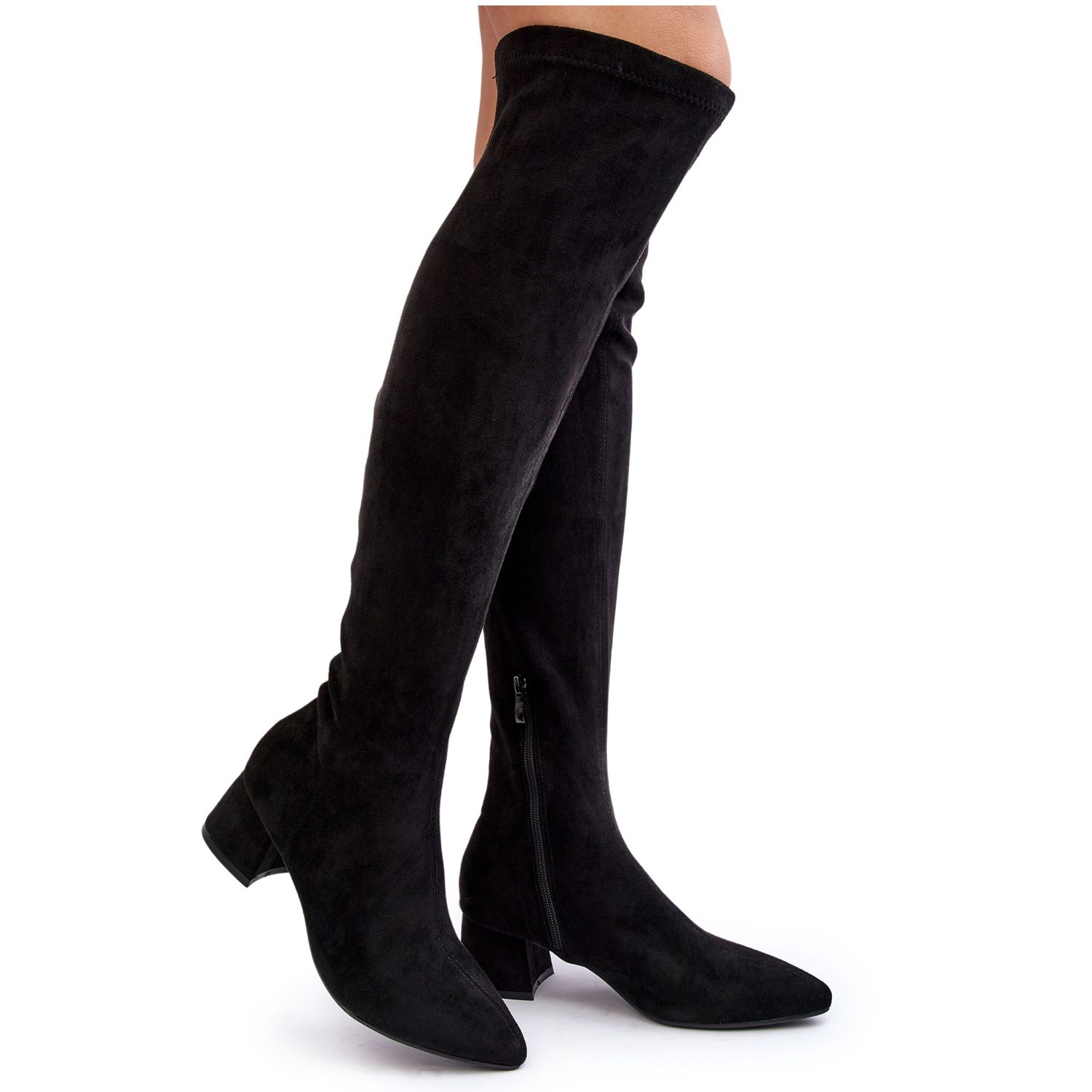 Apresentamos botas de joelho da moda com maidna preta baixa, que se tornará parte integrante do seu guarda -roupa de outono e inverno. Feito de camurça ecológica de alta qualidade, essas botas combinam elegância com conforto. A parte superior alcance sobre o joelho enfatiza perfeitamente as pernas, e os narizes no Spitz as prejudicam opticamente.