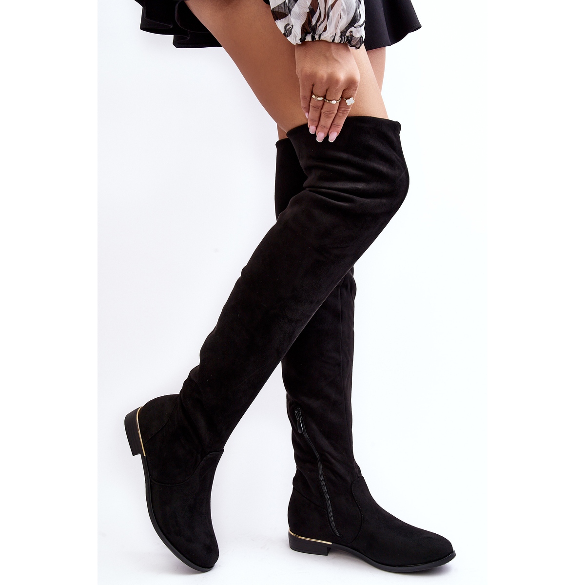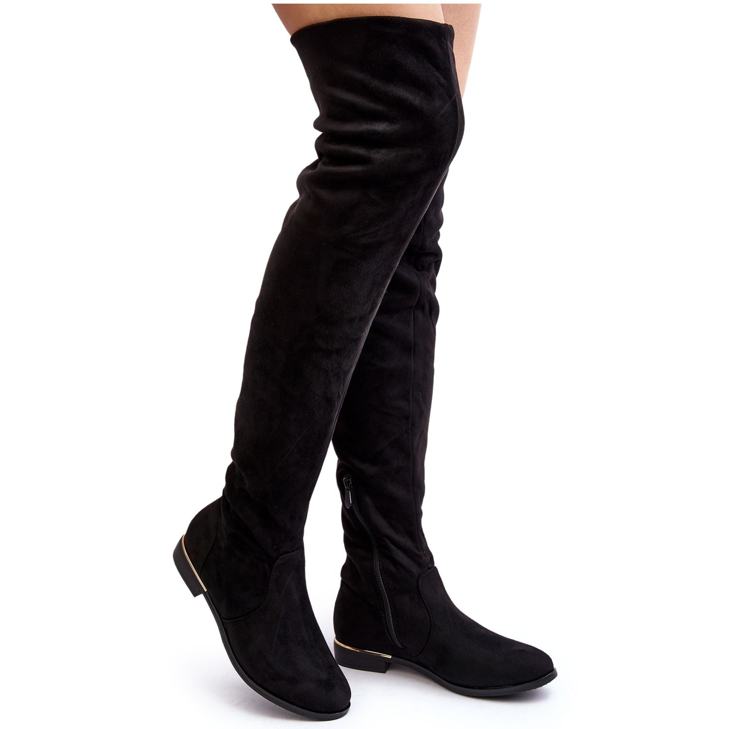Inna marka Botas femininas acima do joelho com salto plano, Bikka preta preto