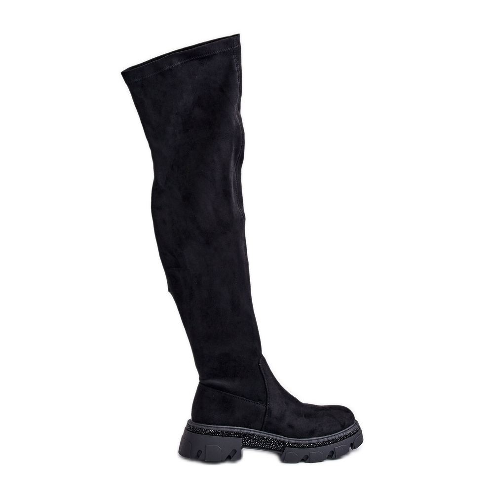 Detalhes: Botas femininas acima do joelho em camurça ecológica preta Irithalla preto