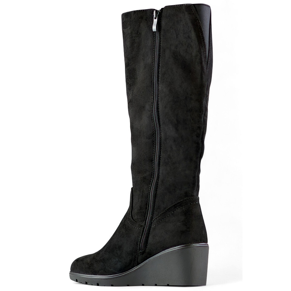 Descubra a elegância e o conforto com botas de camurça preta sob o joelho da outra marca. Essas botas únicas de cunha feminina combinam design e funcionalidade da moda, graças aos quais são perfeitos para os dias frios outono/inverno.