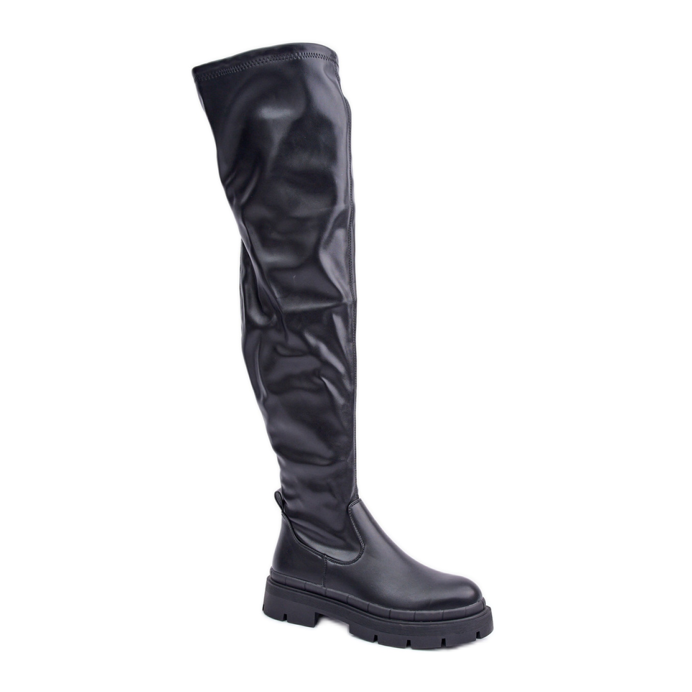 Você está procurando os sapatos perfeitos para dias frios? Aqui estão as botas de joelho femininas na plataforma em preto, que combinam elegância com conforto! Feitos de couro ecológico de alta qualidade, esses mosqueteiros elegantes certamente atrairão looks. O nariz arredondado lhes dá estilo, e a parte superior alcançando o joelho se mistura de maneira fantástica com vestidos e saias.
