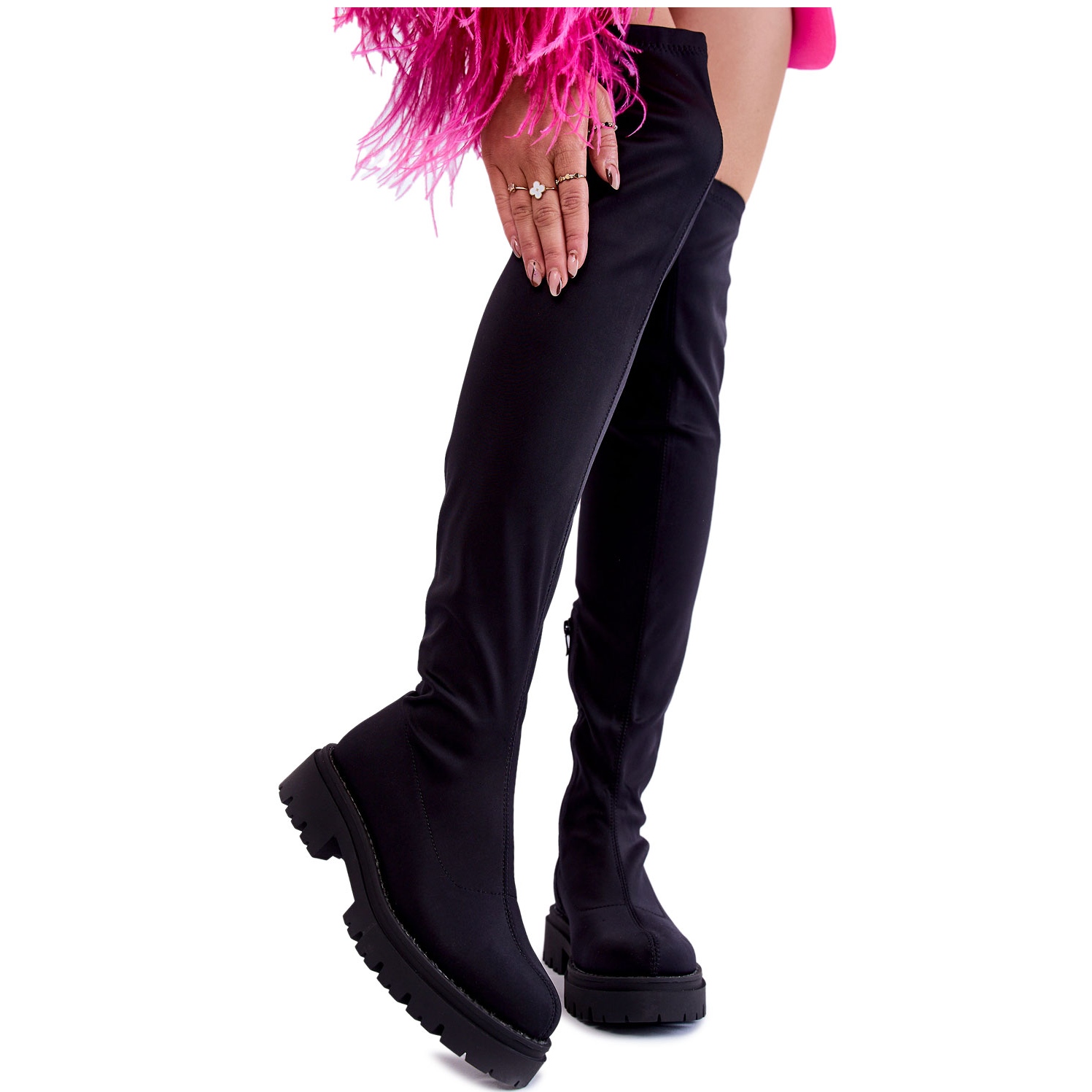 Detalhes: Botas femininas acima do joelho pretas Brinna preto