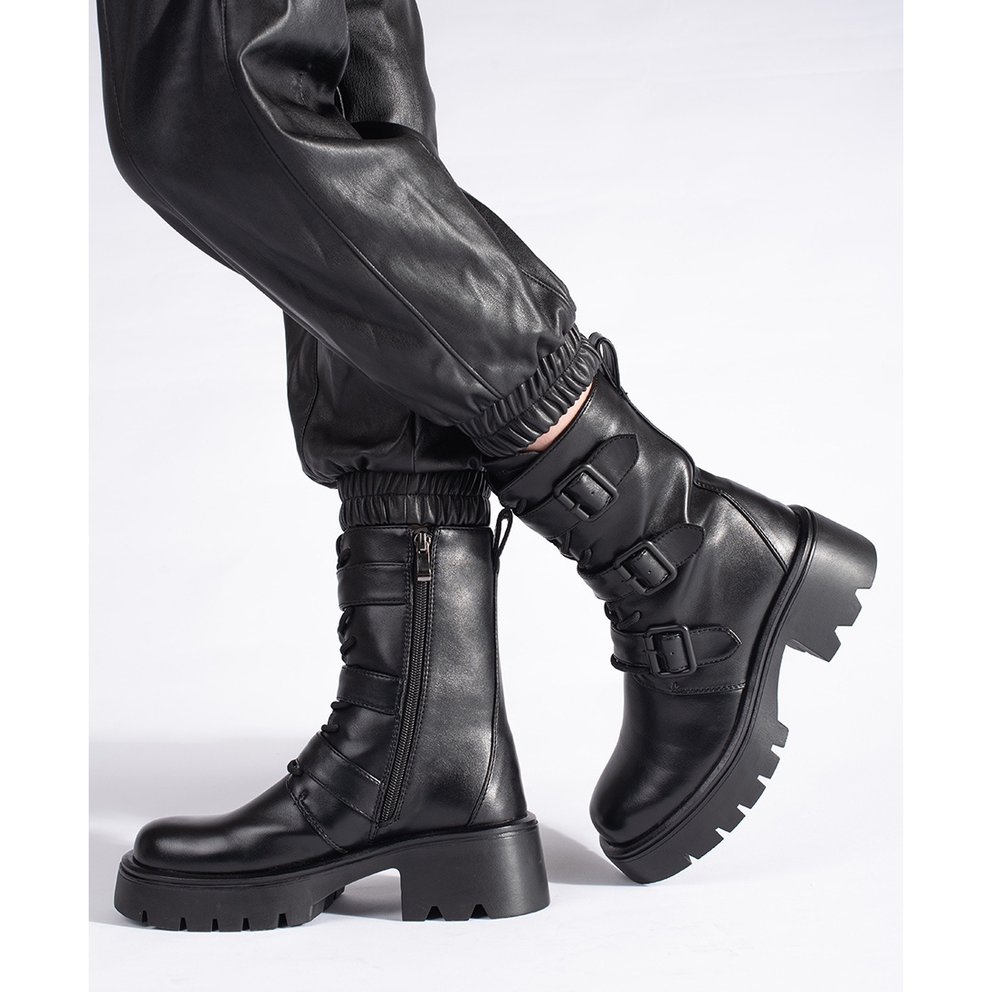 Detalhes: Botas femininas altas pretas de trabalho com fivelas preto
