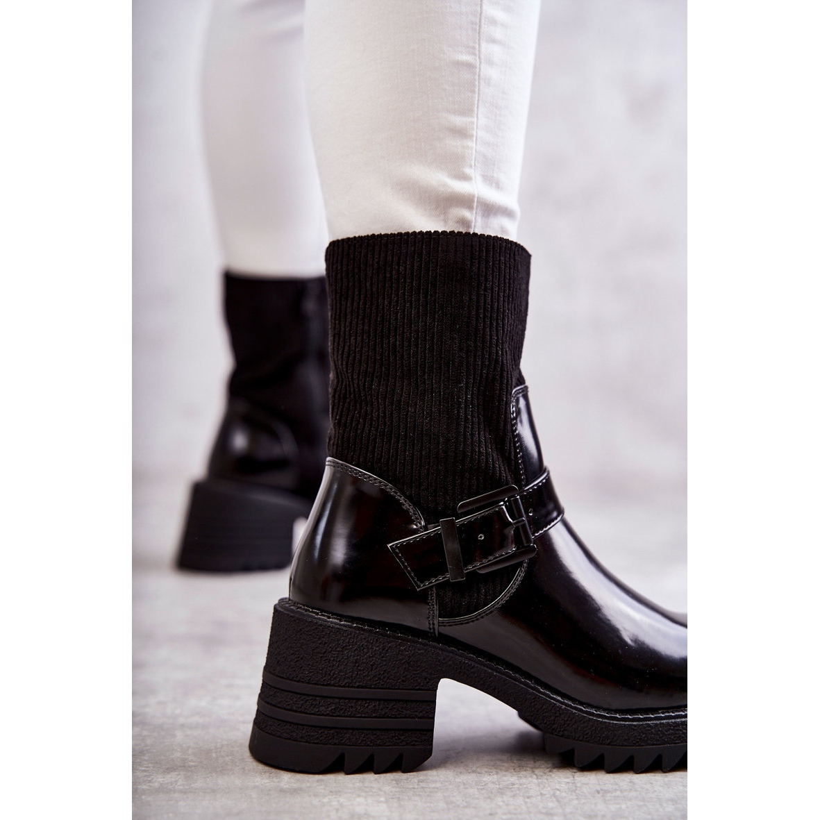 Botas elegantes e práticas criadas para dias mais frios. A combinação de couro ecológico envernizado com um material parecido com um veludo de veludo -veludo oferece a eles um caráter da moda e um tanto rock, e o isolamento na forma de um cobertor de calçados garante conforto térmico. Uma sola enorme com um piso irregular e um salto estável de 7 cm com um conforto de garantia de plataforma de 2,5 cm e uma certa etapa, enquanto uma fivela decorativa com cinto ajustável adiciona um sotaque elegante.