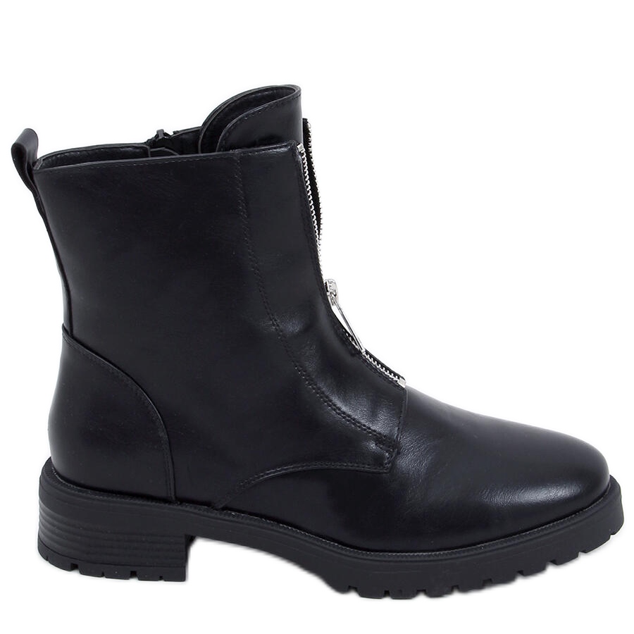Conheça os botins femininos Aslang Black do fabricante PA1 - um elemento fashion do seu guarda-roupa que combina perfeitamente elegância e conforto. Estes botins de flor integral na cor preta clássica distinguem-se pelo seu estilo militar e por um detalhe único - um marcante zíper prateado na frente, que não só atrai o olhar, mas também facilita a colocação e a retirada do calçado.