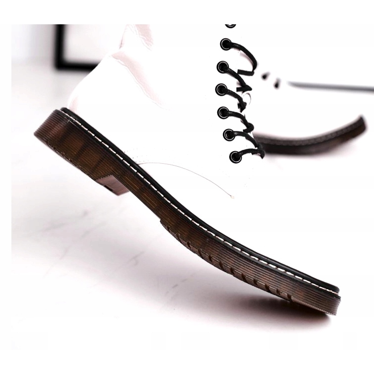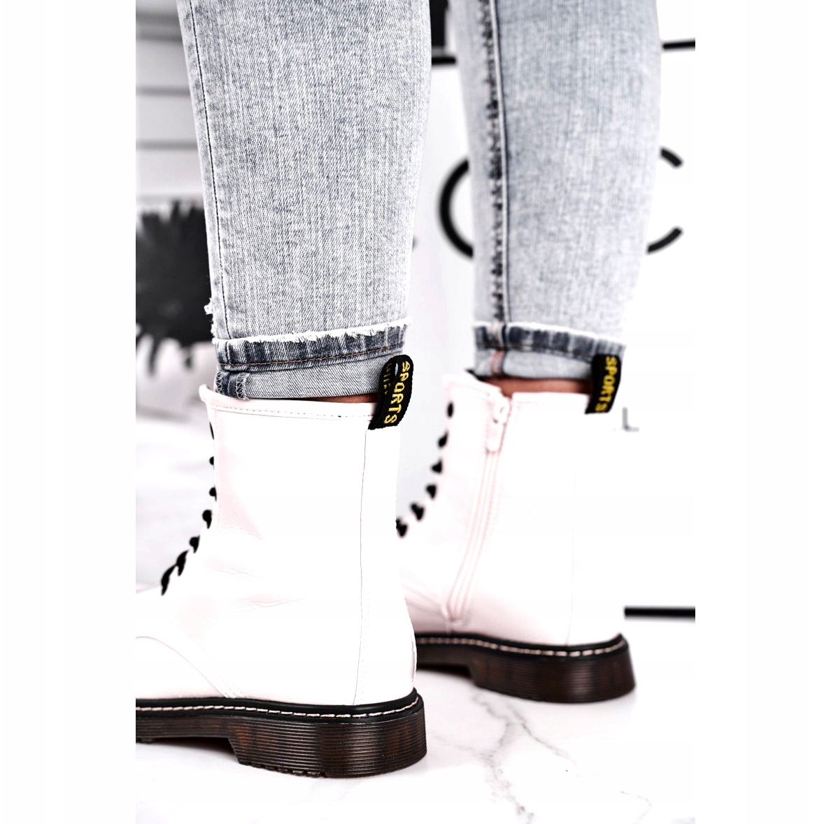 As botas elegantes e expressivas femininas feitas de couro ecológico envernizado em uma cor da moda e puramente branca, com detalhes em pretos contrastantes. O acabamento preciso e o elegante Hertle fazem com que os sapatos se misturem bem com estilizações elegantes e cotidianas. Um salto baixo e estável de 3 cm garante o conforto do uso e o aquecimento na forma de peles de calçados macios garantem calor durante os dias mais frios.
