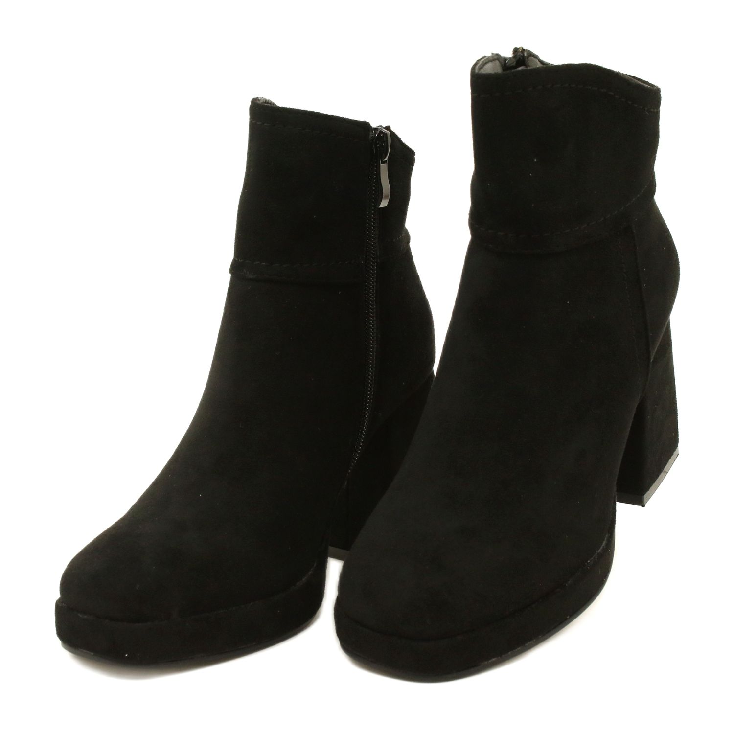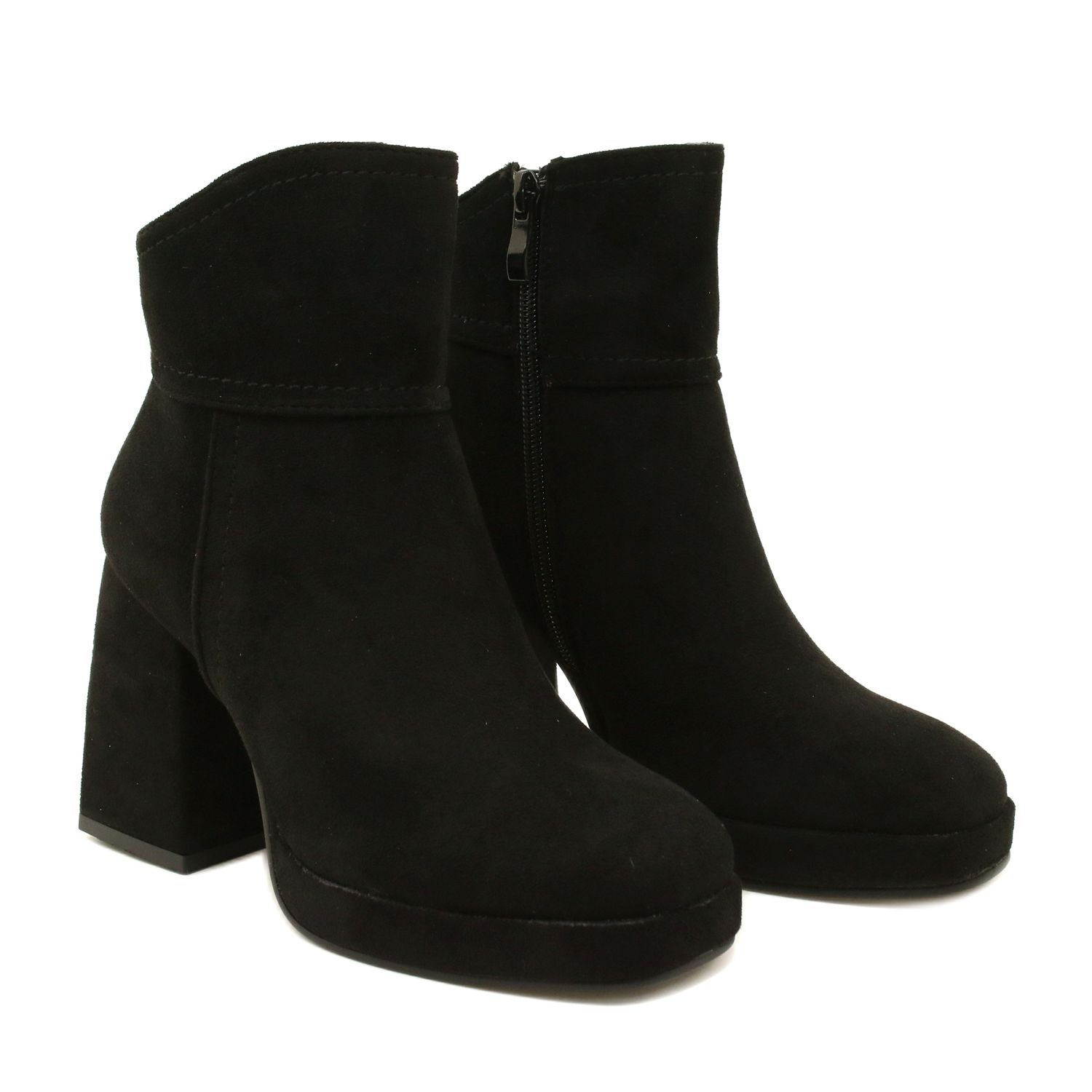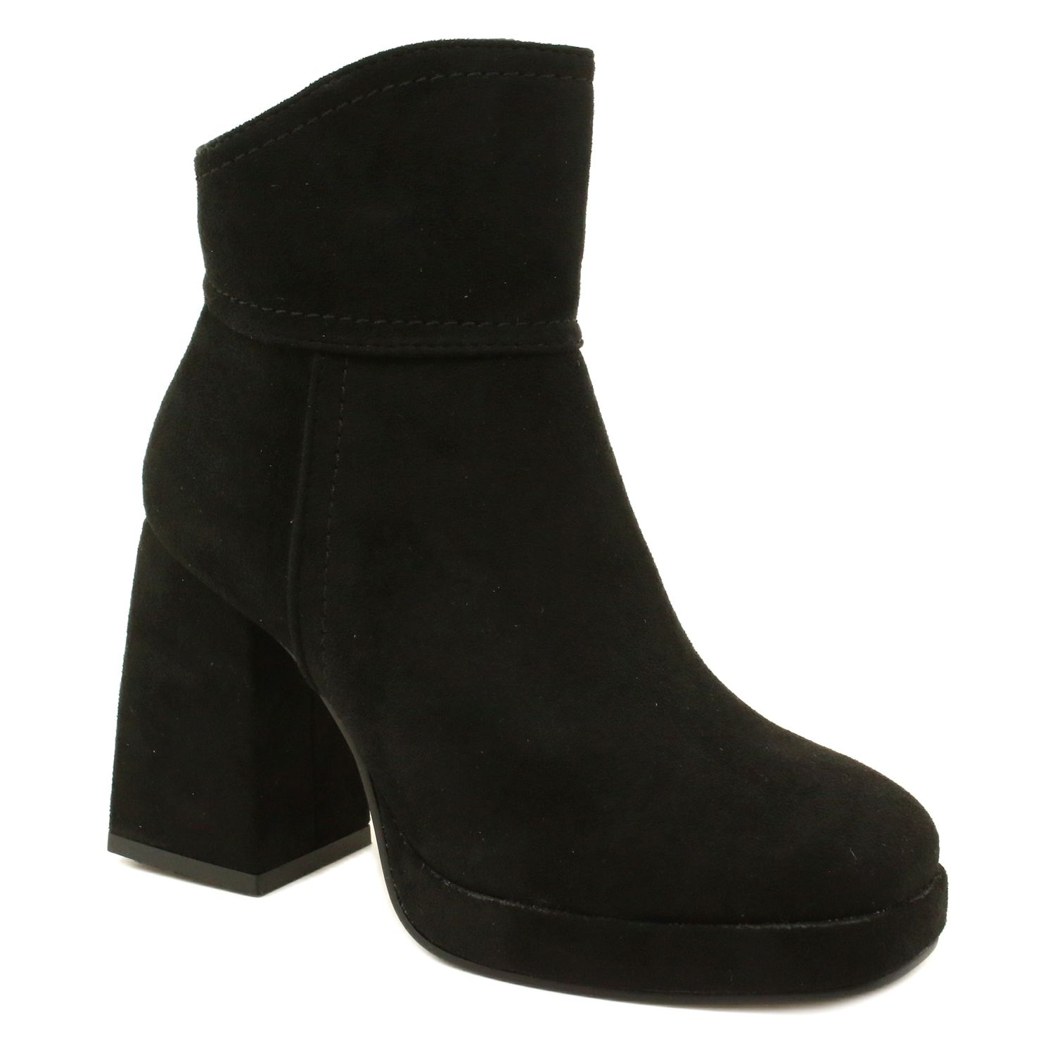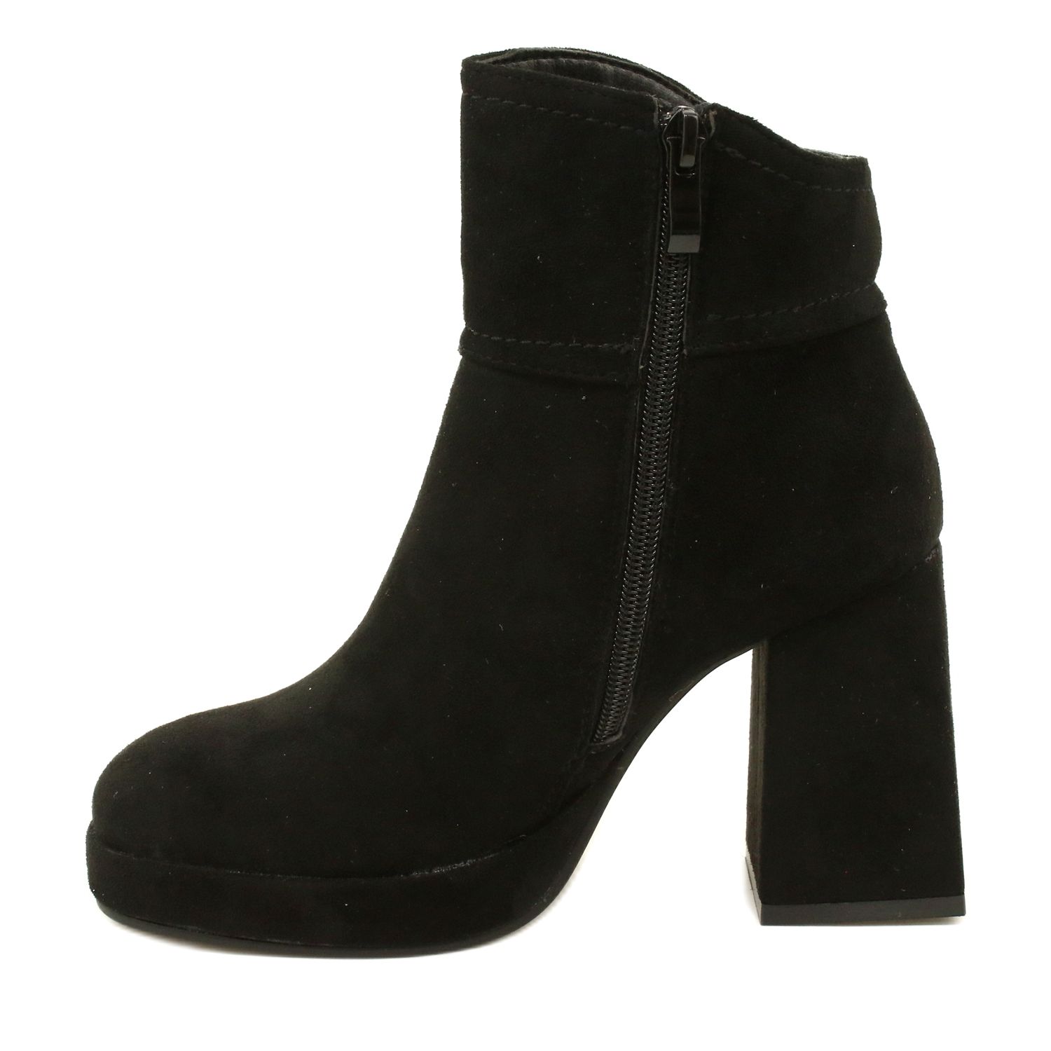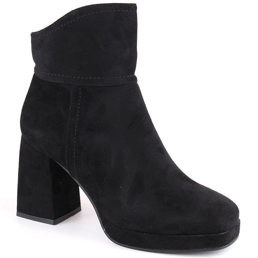 Botins modernos de camurça com salto, isolados com pele, pretos, da M.Daszyński, são a escolha perfeita para mulheres que desejam combinar estilo com conforto nas difíceis condições de inverno. Estas elegantes botas, numa clássica cor preta, combinam perfeitamente com vários looks, tornando-as num elemento versátil do guarda-roupa.