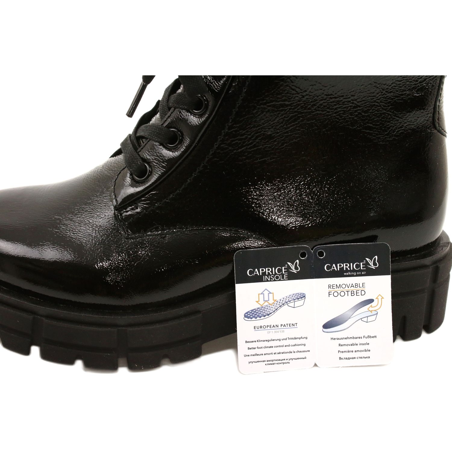 Detalhes: Botas femininas Caprice 9-25252-27 017 laca preta preto