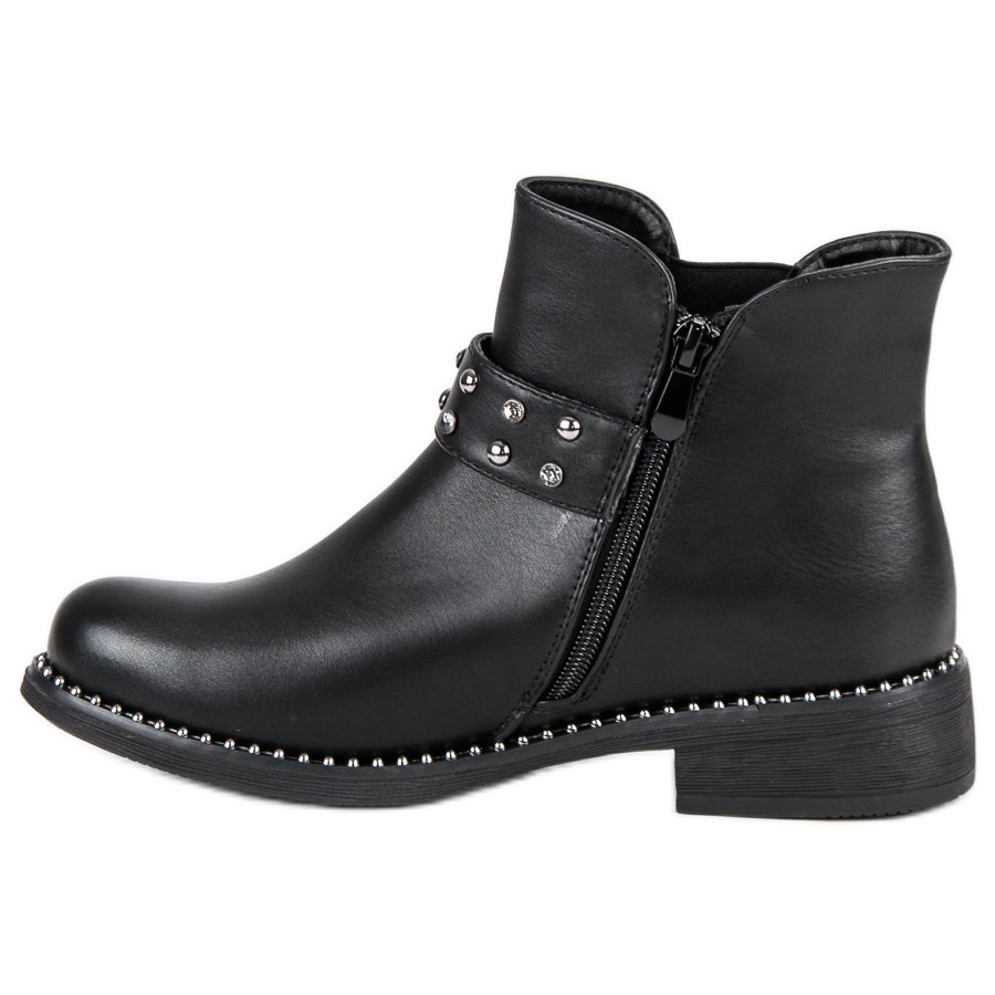 A altura do salto de 3,5 cm é a solução ideal para mulheres que valorizam a combinação de estilo e conforto. Estes botins são perfeitos tanto para looks casuais como mais elegantes, combinando com muitos estilos diferentes. A sua cor preta universal torna-os extremamente versáteis e fáceis de combinar com outras peças do guarda-roupa.