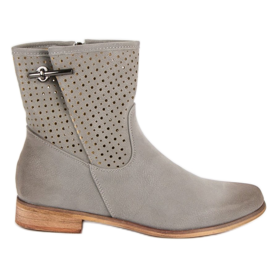 São botins femininos casuais cinza da marca Filippo, que combinam design moderno e conforto de uso. Estas botas estilosas caracterizam-se por um cano alto com um lindo padrão vazado, o que lhes confere um caráter elegante e feminino. A utilização de uma sola leve que imita a madeira acrescenta originalidade e torna-os um complemento perfeito para muitos estilos de outono e inverno.