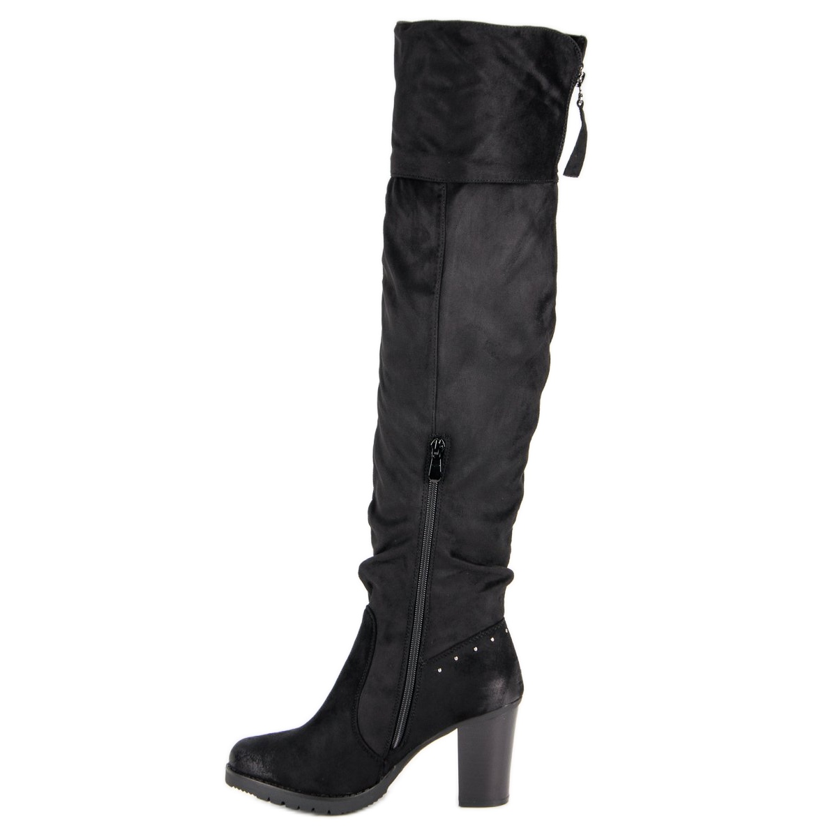 As botas femininas VINCEZA na cor preta são a opção ideal para mulheres que desejam aliar look fashion com conforto. Estas elegantes botas acima do joelho foram desenhadas para os dias mais frios e o seu acabamento em camurça acrescenta elegância.