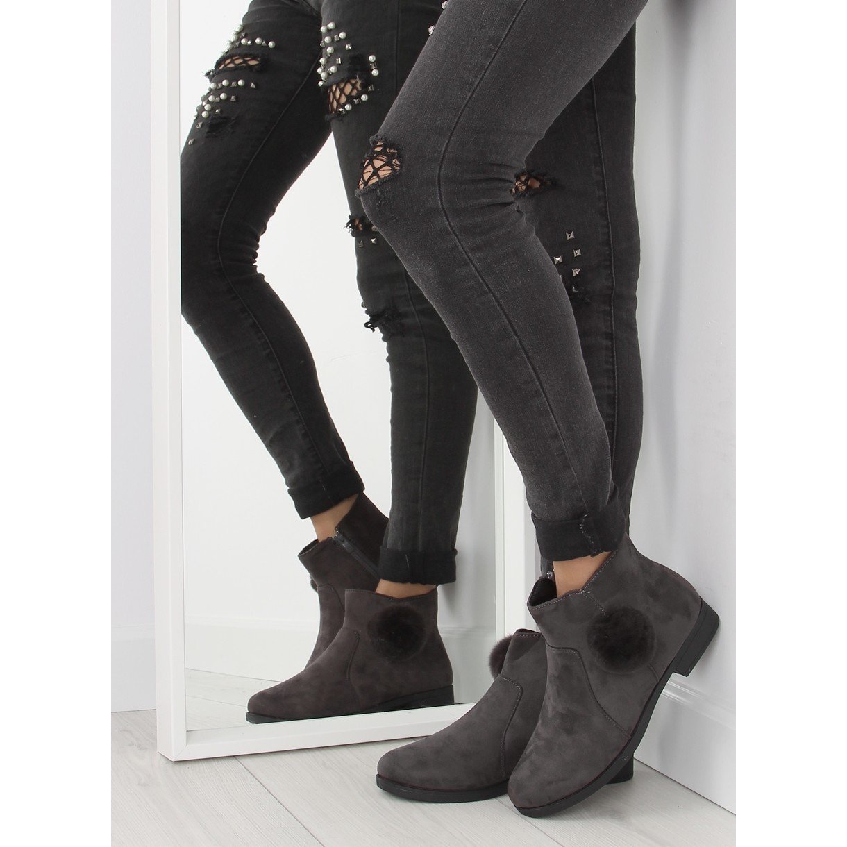 Inna marka Botas femininas cinza X-15 cinza com pompom