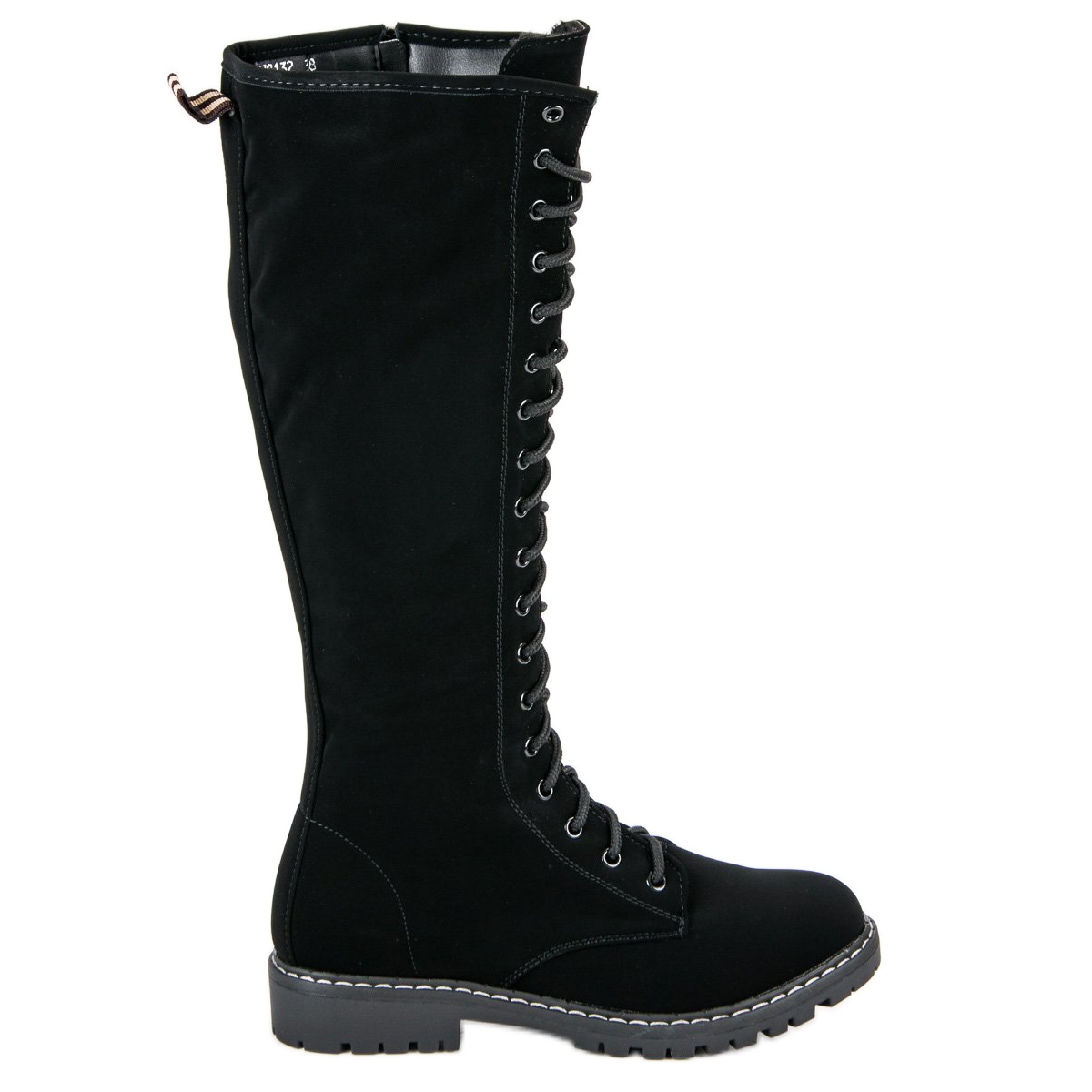 Graças ao laço em todo o comprimento, ajustam-se perfeitamente à perna, o que garante conforto de uso. A biqueira redonda e o salto plano de 3 cm garantem estabilidade e conforto no uso diário, e a sola sintética com banda de rodagem garante boa aderência em diversas superfícies.