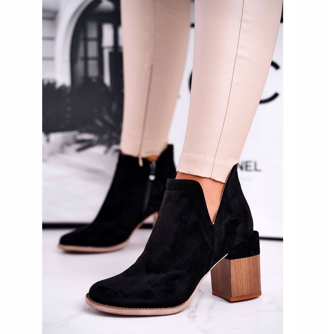 Confeccionadas em couro camurça ecológico de alta qualidade, essas botas se diferenciam pelo enorme salto bloco, que garante não só estabilidade, mas também conforto de uso o dia todo. Graças à altura do salto de 8,5 a 10 cm e ao salto elevado, você pode desfrutar de estética e autoconfiança, independente da ocasião. Além disso, o corte externo do sapato introduz um elemento de geometria moderna, o que torna este modelo extremamente elegante e moderno.