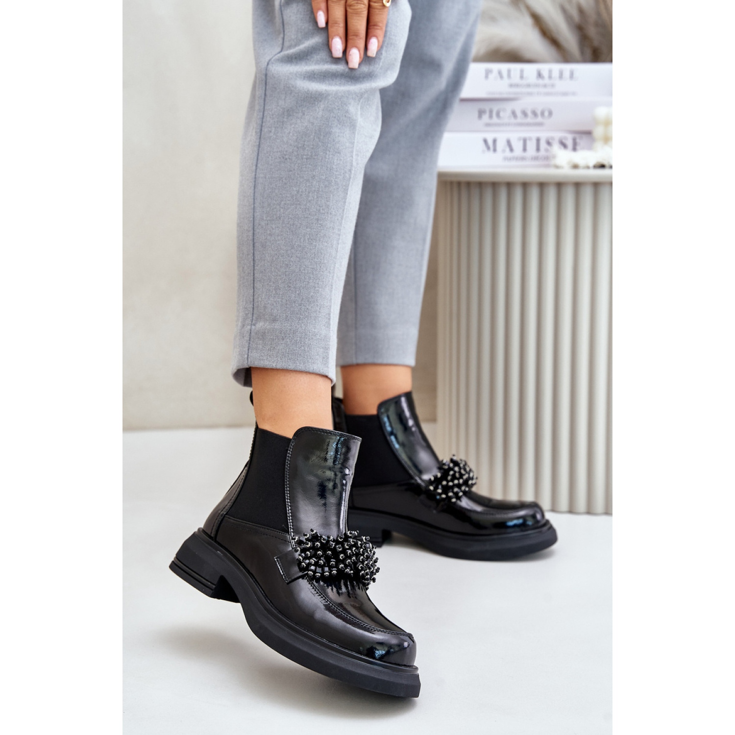 Detalhes: Botas femininas com decoração 24BT15-7453 pretas preto
