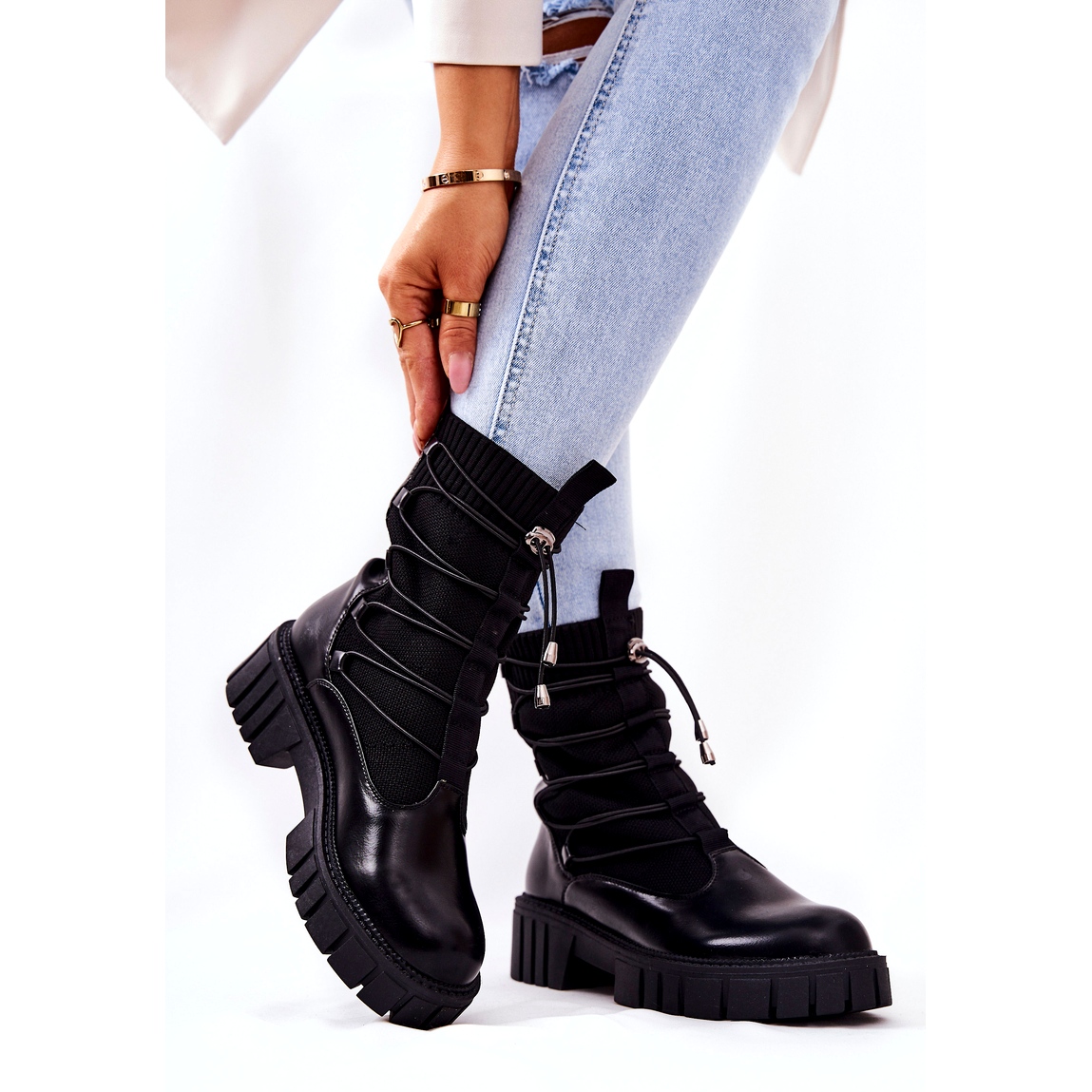 Descubra estilo único e conforto com botins de trabalho com meia preta! Estes sapatos da moda são a combinação perfeita de modernidade e conforto. O cabedal macio em meia, que se ajusta confortavelmente à perna, e a sola maciça, que enfatizam o caráter dinâmico do modelo, tornam essas botas não só práticas, mas também extremamente estilosas.
