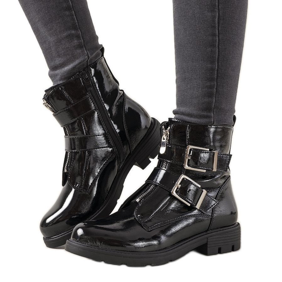 Apresentamos elegantes botins femininos Bonami pretos envernizados, perfeitos para a temporada outono-inverno. Fabricados em couro envernizado de alta qualidade, combinam o estilo clássico com um visual moderno. Estas botas não só têm um aspecto fantástico, mas também proporcionam um excelente conforto de utilização, graças ao isolamento em forma de manta de calçado agradável ao toque, o que as torna a escolha ideal para os dias mais frios.