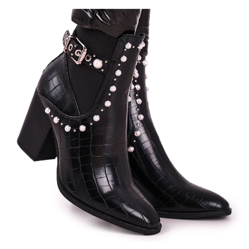 Detalhes: FRERY Botas femininas com salto pérola preto verbos