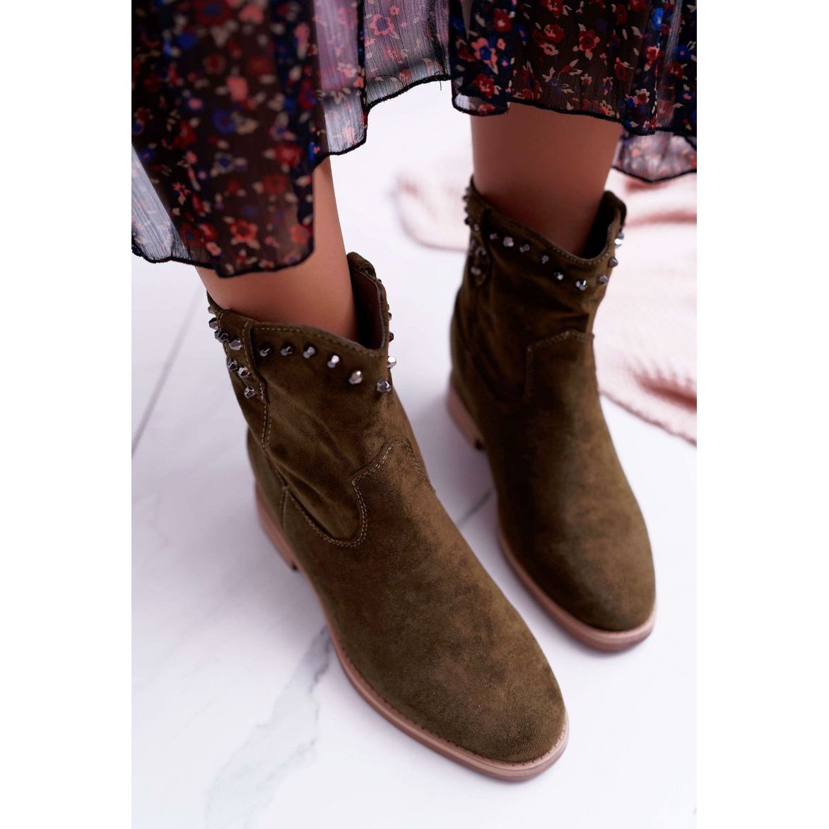 Detalhes: SEA Botas femininas com salto plano aquecido no tornozelo Olive Deminis verde