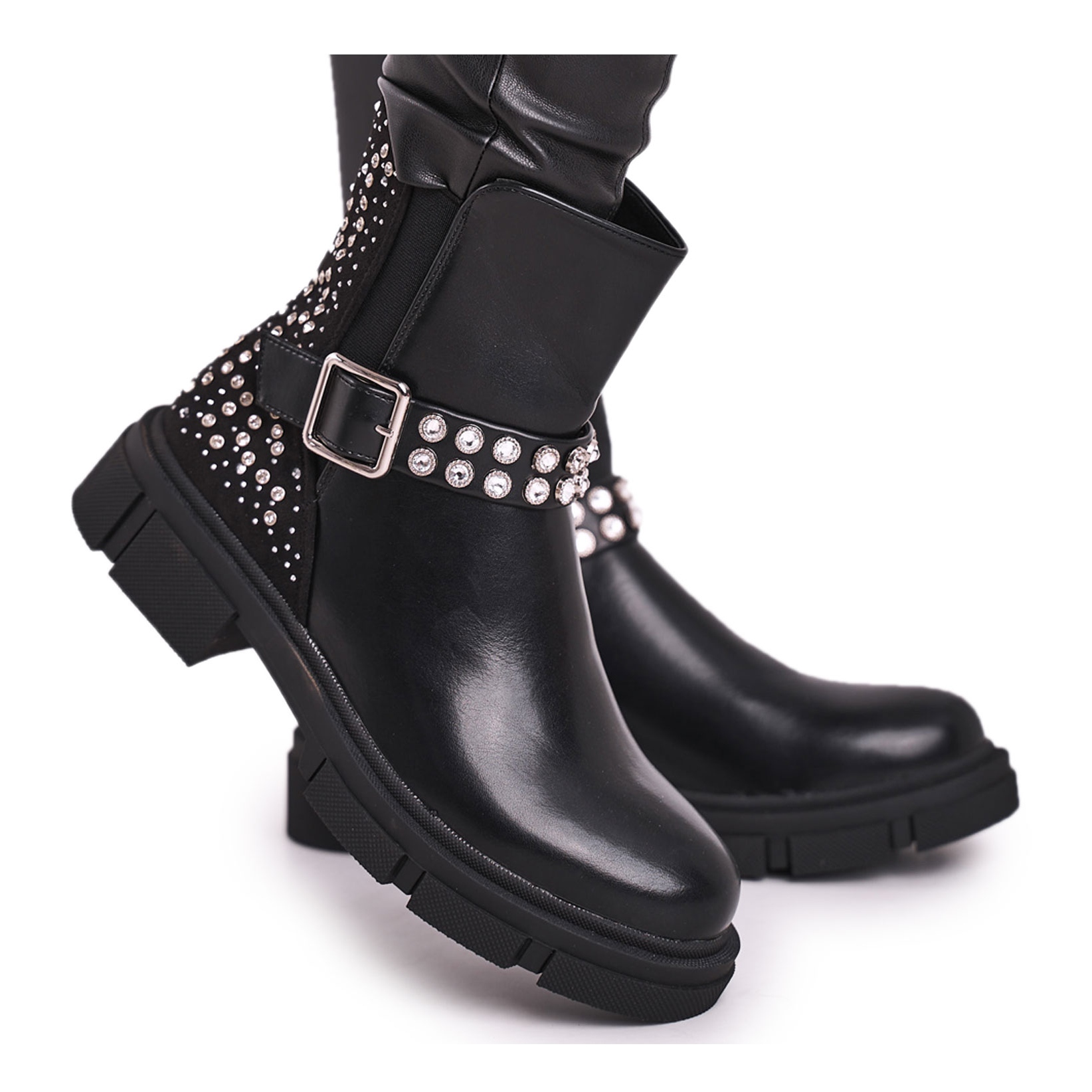 Detalhes: HAN Botas femininas com zircônia cúbica preta Giuliana preto