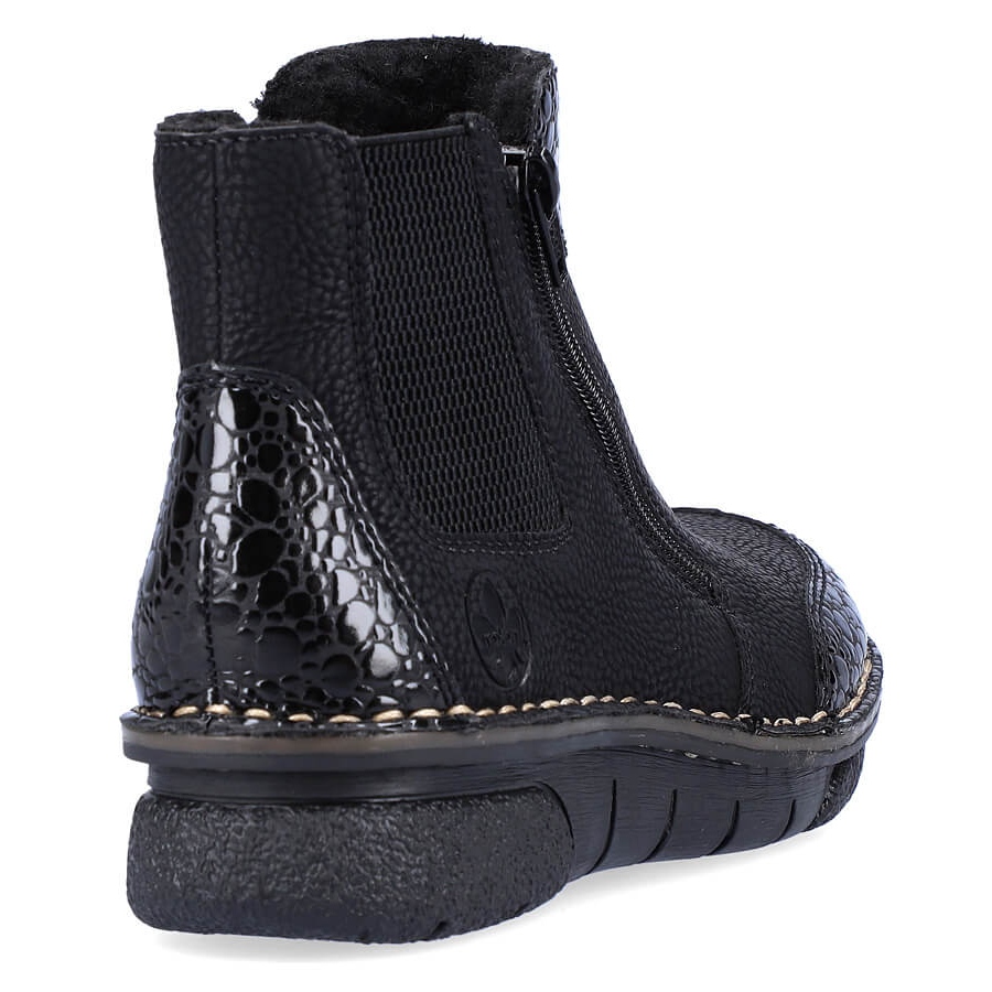 Detalhes: Botas femininas confortáveis com isolamento preto Rieker 73355-00