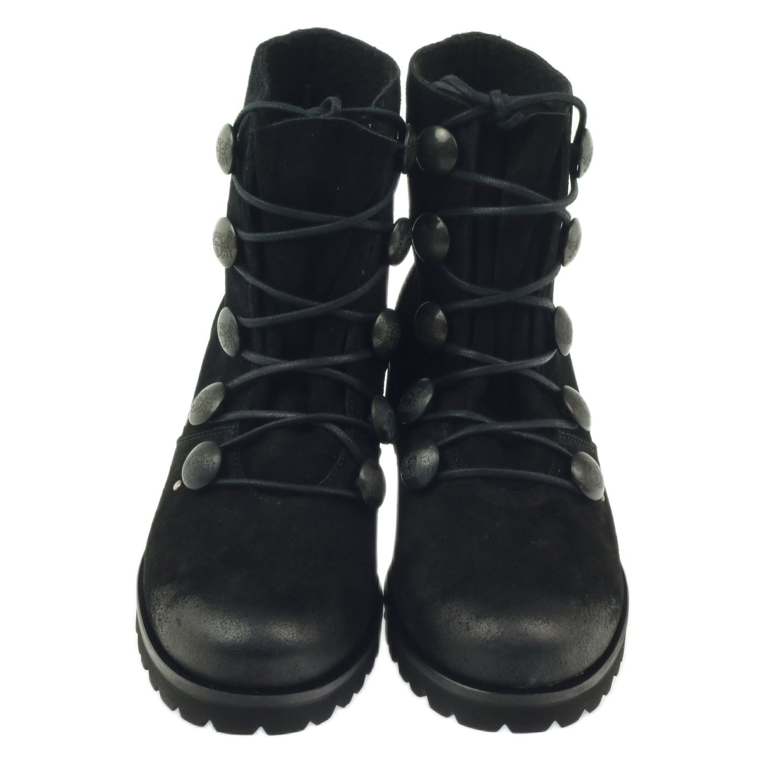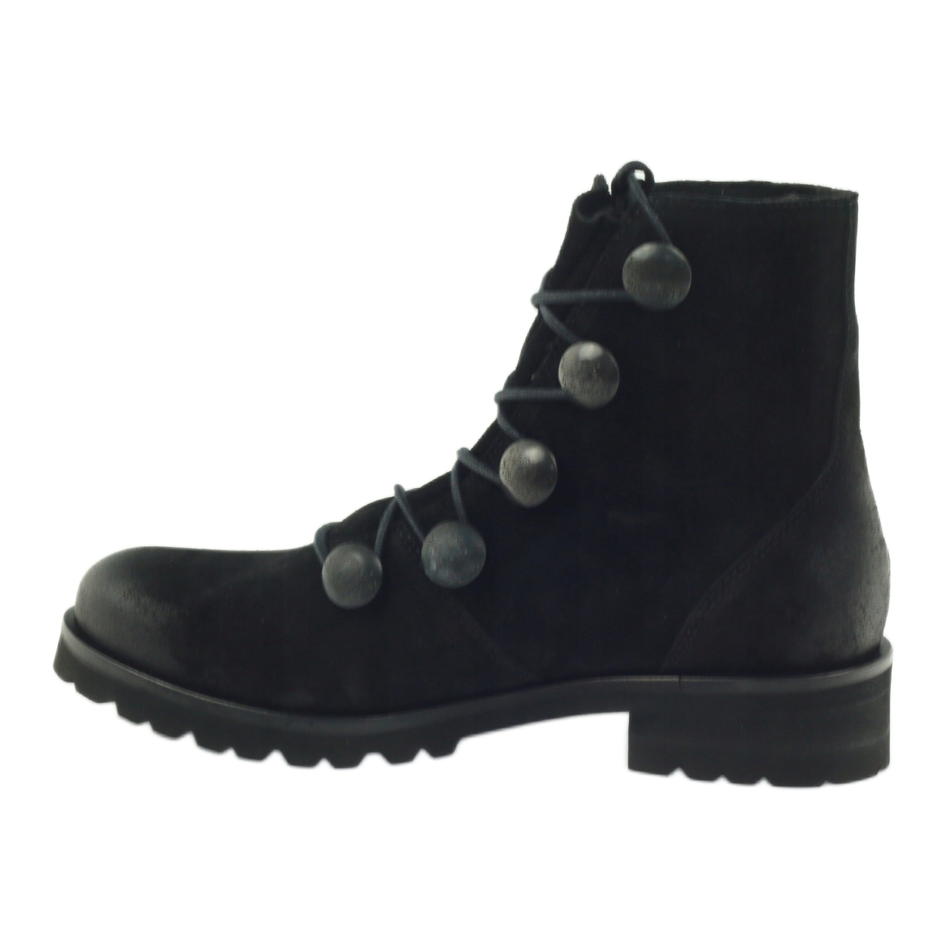 Botins femininos Badura modelo 7871 - preto, camurça, com botões decorativos e strass