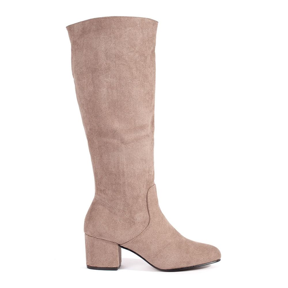 Detalhes: Botas femininas de camurça bege de salto alto
