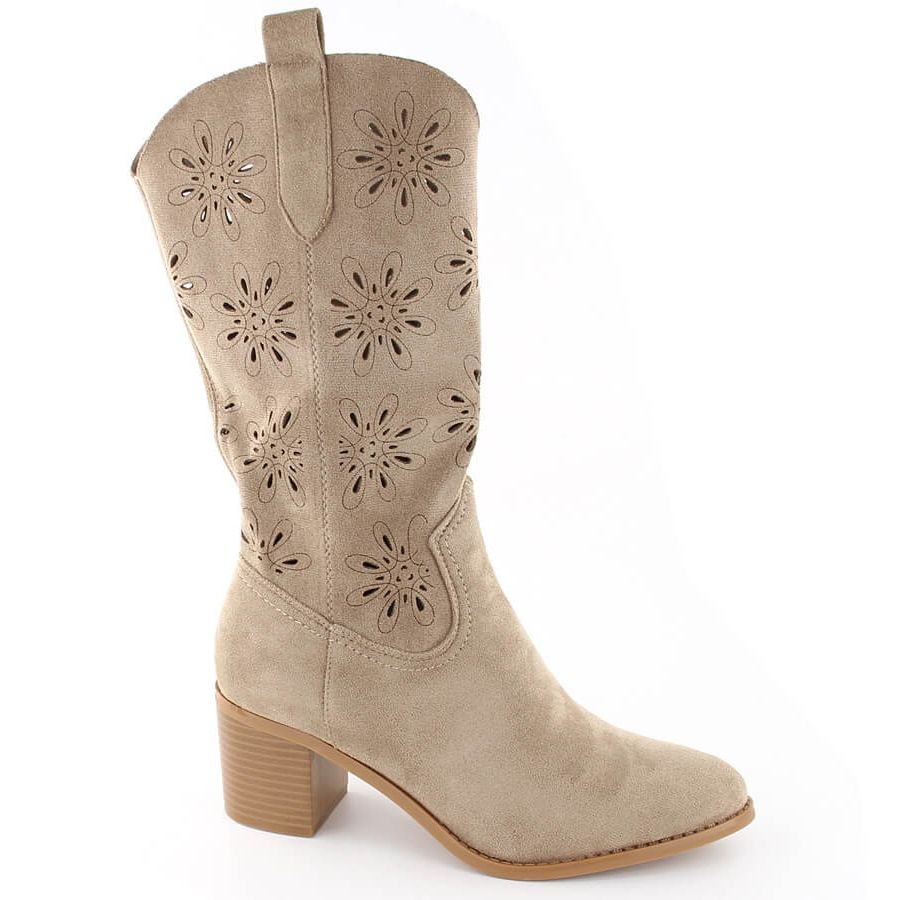 Detalhes: Botas femininas de camurça com aberturas, bege Jezzi RMR2337-11