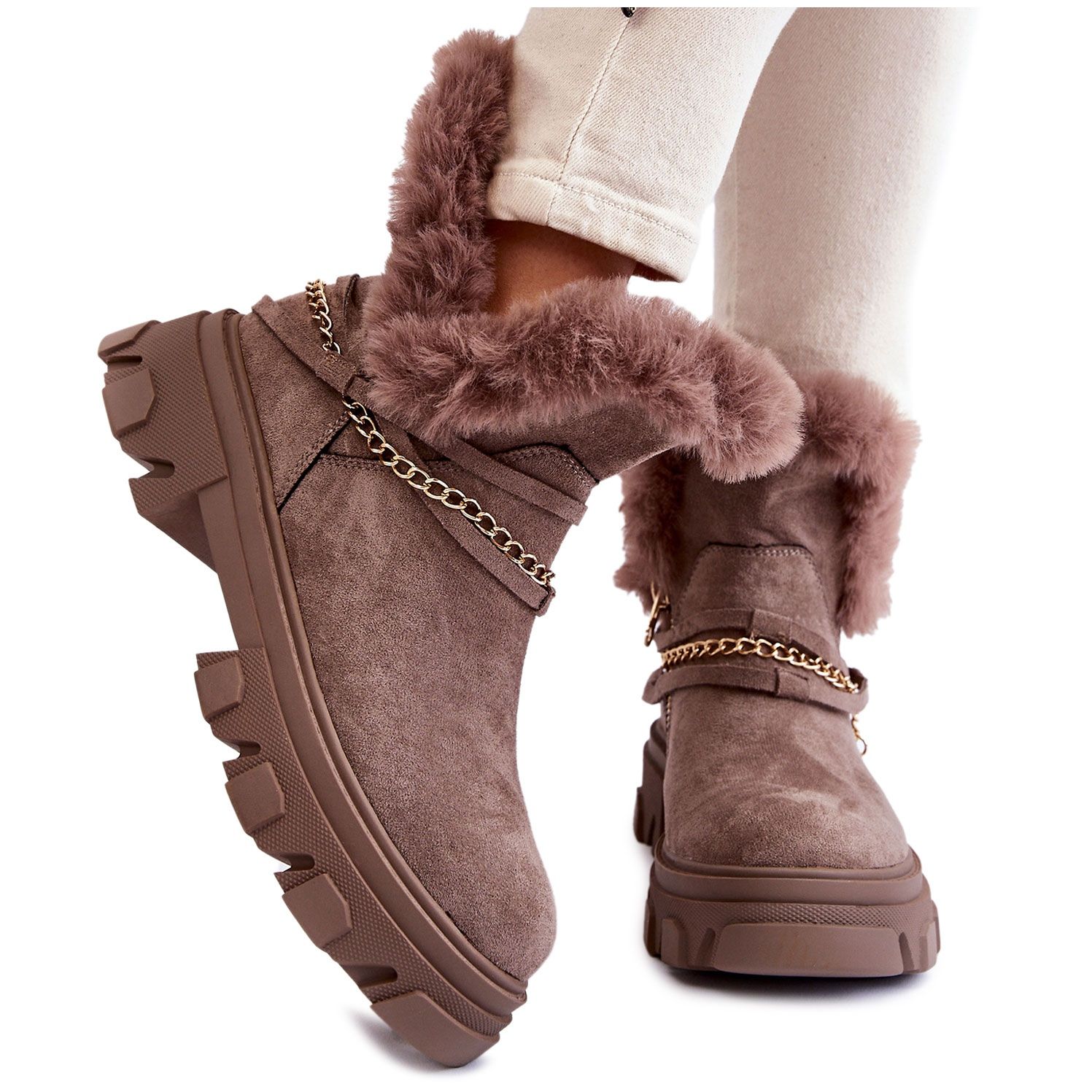Detalhes: PM1 Botas femininas de camurça com corrente decorativa marrom claro respeito castanho