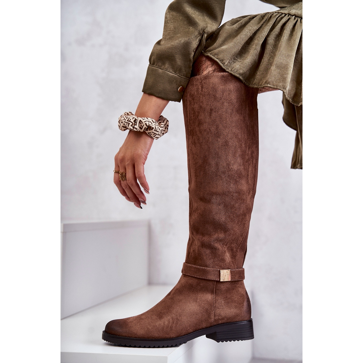 Descubra elegância e conforto com as clássicas botas femininas de camurça Vinceza Henrike em tom de marrom. Estas botas exclusivas são cuidadosamente confeccionadas em couro camurça ecológico, o que garante aparência estética e durabilidade. Este modelo distingue-se por um prático fecho de correr ao longo de todo o comprimento da gáspea, que permite calçar e descalçar facilmente o calçado.