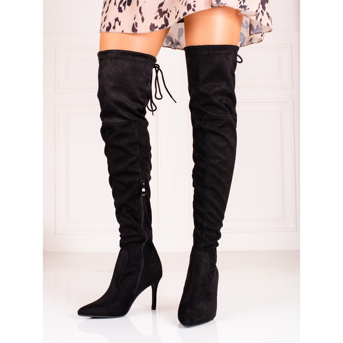 As botas femininas de camurça acima do joelho Shelovet na cor preta são a escolha perfeita para toda mulher que deseja combinar elegância com conforto no dia a dia. Estas botas estilosas são feitas de imitação de camurça de alta qualidade, o que não só lhes confere um visual luxuoso, mas também garante conforto de uso.