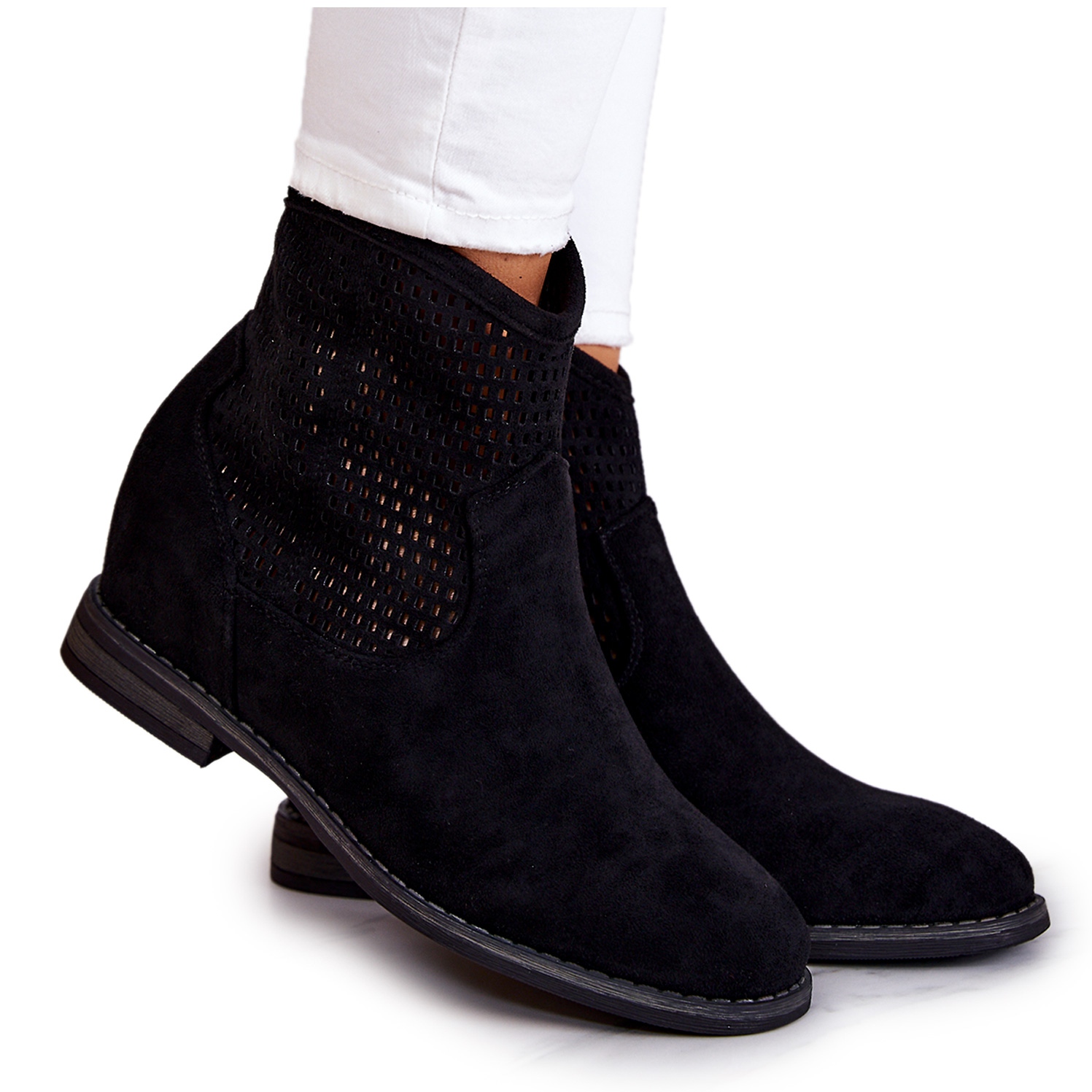 Detalhes: S.Barski Botas Femininas de Camurça Cunha Oculta Solene Preto